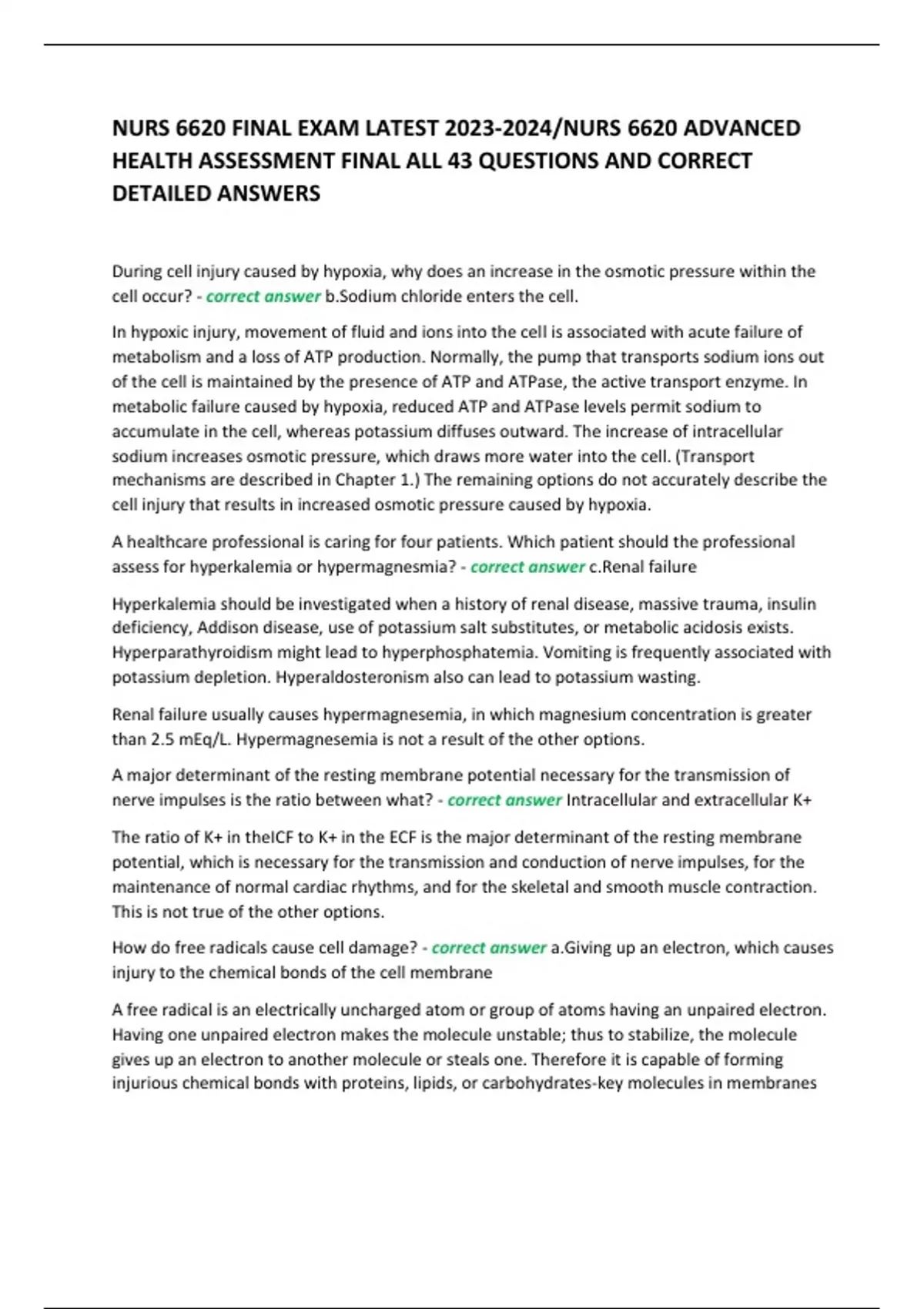 HEALTH ASSESSMENT FINAL ALL 43 QUESTIONS AND CORRECT