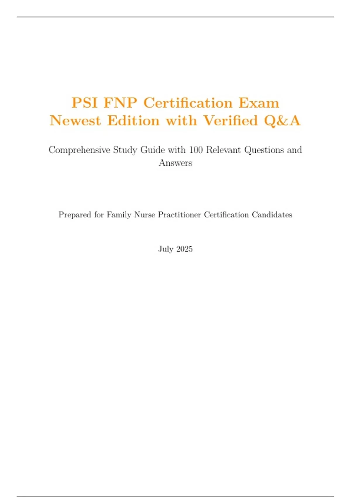 This study guide is tailored for the PSI Family Nurse Practitioner (FNP) Certification