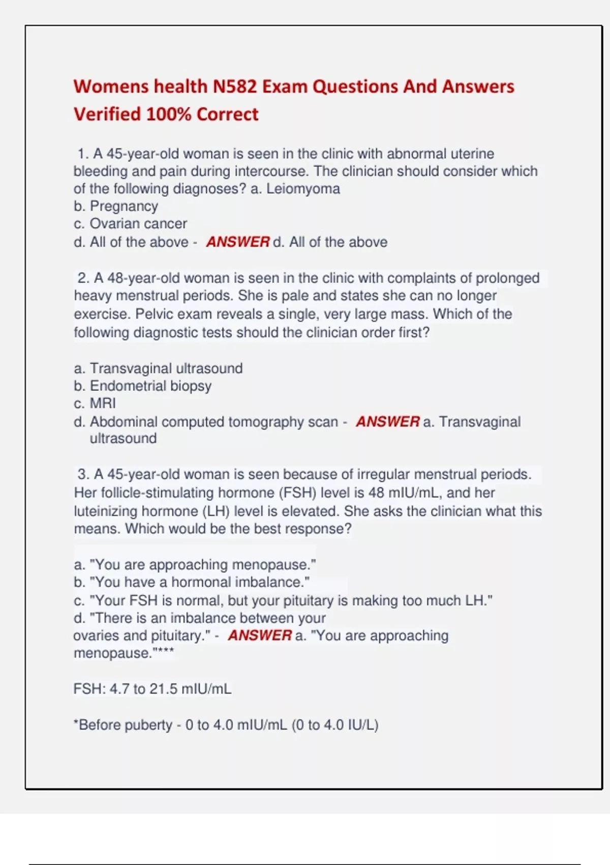 1. A 45-year-old woman is seen in the clinic with abnormal uterine