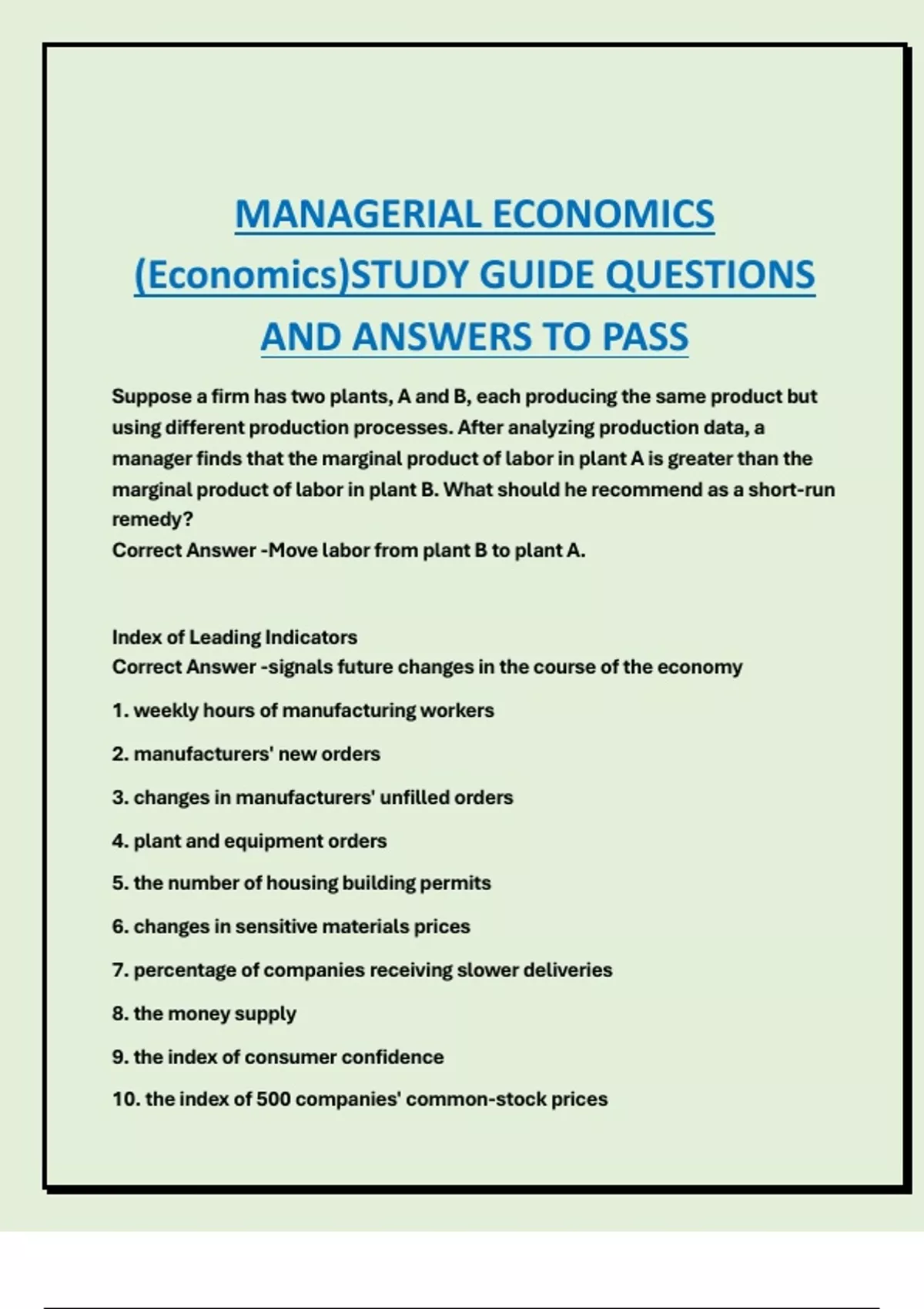 (Economics)STUDY GUIDE QUESTIONS