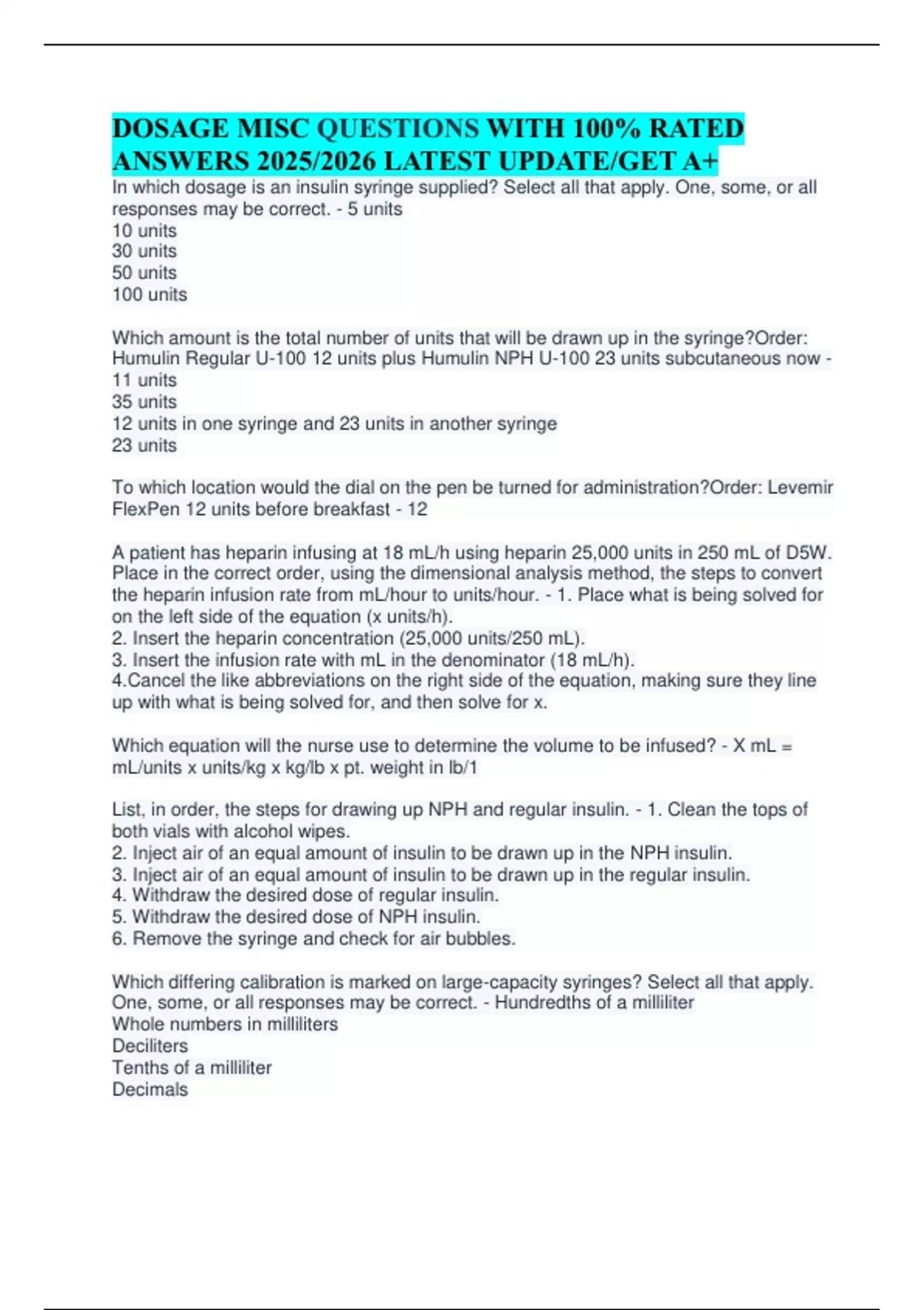 Which amount is the total number of units that will be drawn up in the syringe?Order: