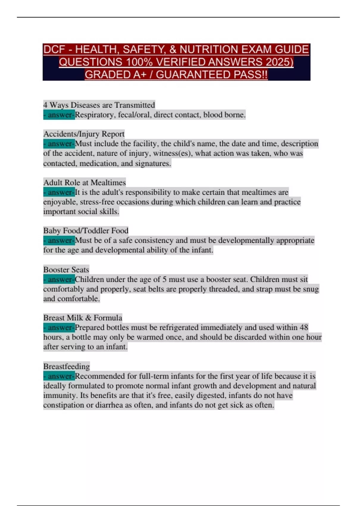 DCF Health, Safety & Nutrition Exam Guide 2025: 100% Verified Q&A – Guaranteed Pass!