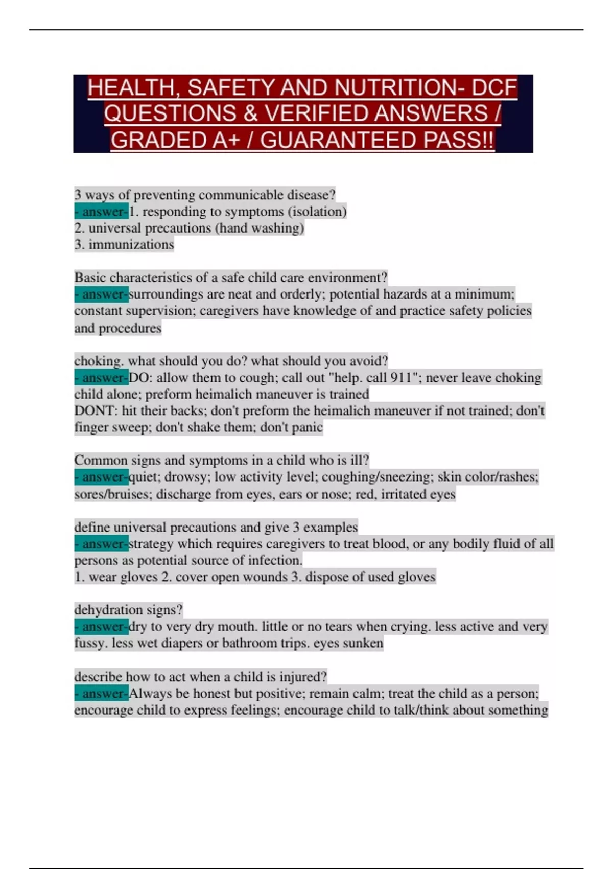 DCF Health Safety & Nutrition 2025: Q&A | Instant Download | Guaranteed Pass*