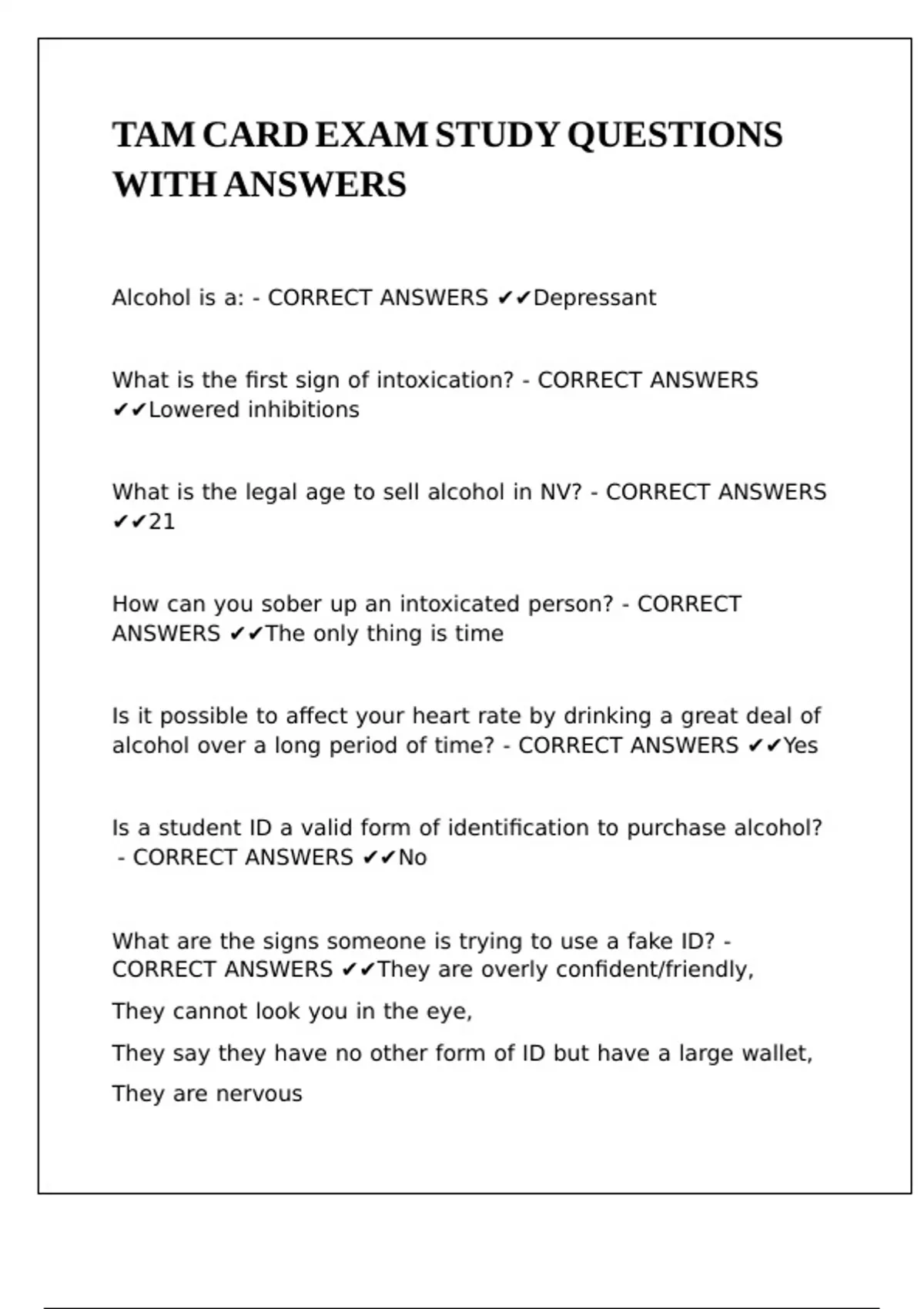 TAM CARD EXAM STUDY QUESTIONS WITH ANSWERS