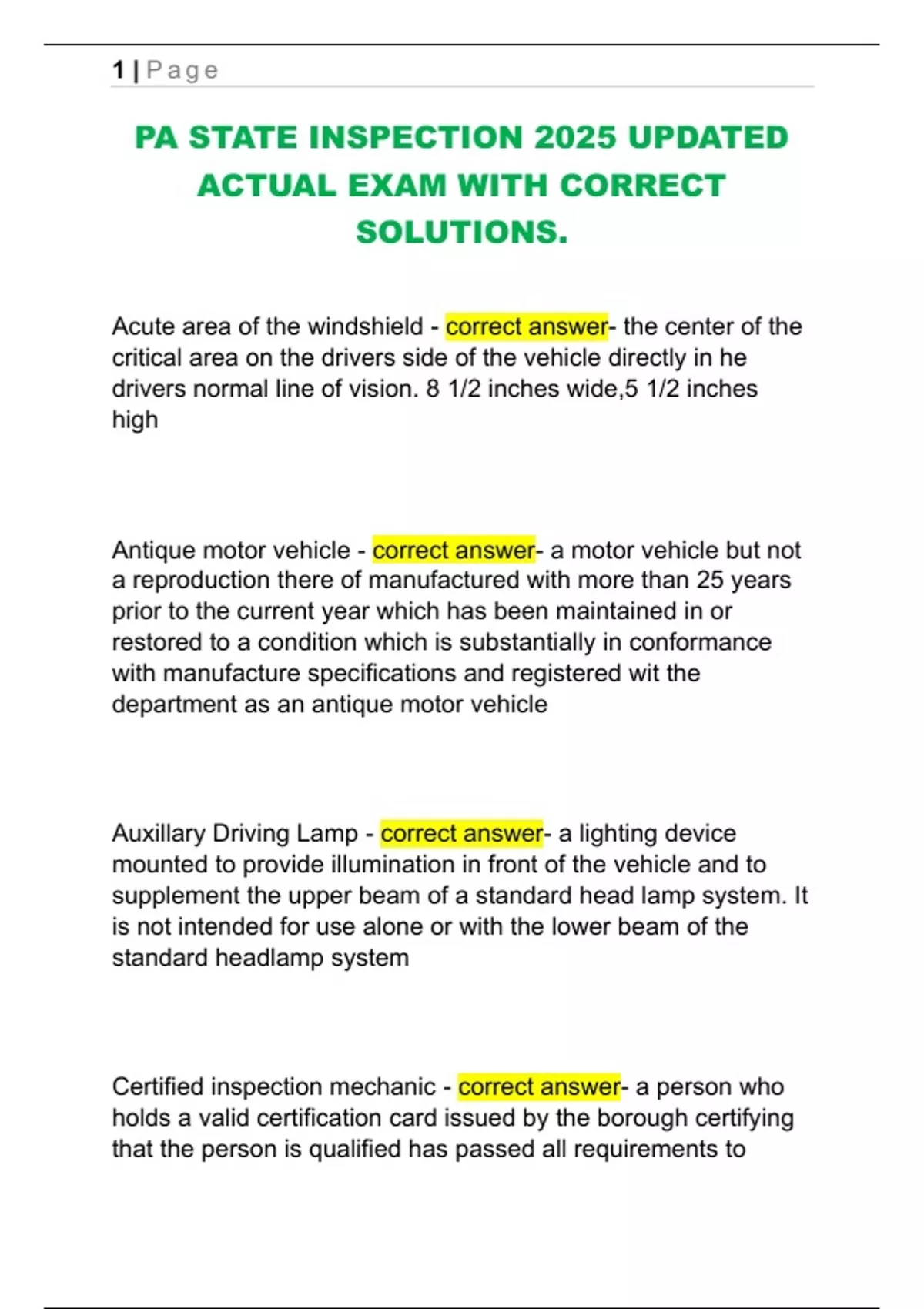 PA STATE INSPECTION 2025 UPDATED