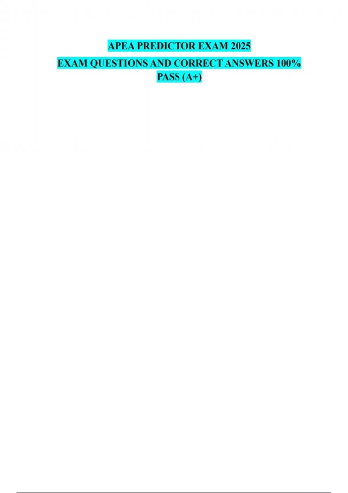 APEA PREDICTOR EXAM 2025 EXAM QUESTIONS AND CORRECT ANSWERS 100% PASS (A+) What is the biggest side effect of colchicine? - Answer diarrhea How would you describe the appearance of molluscum contagiosum? - Answer papules that are umbilicated and contain a caseous plug How do we treat a broken clavicle in an infant? - Answer no treatment; it should heal on it's own At what week of pregnancy is the uterus palpable just above the pubic symphysis? - Answer week 12 At what week of pregnancy is the fundus palpable halfway between the pubic symphysis and umbilicus? - Answer week 16 At what week of pregnancy is the fundus of the uterus at the umbilicus? - Answer week 20 At what week of pregnancy is the fundus of the uterus halfway between the xiphoid process and umbilicus? - Answer week 28 At what week of pregnancy is the fundus just below the xiphoid process? - Answer week 34 Increased sweat production is a sign of what endocrine disorder? - Answer hyperthyroidism What is Paget's disease? - Answer there is localized increased bone turnover and blood flow resulting in the breakdown of bone and replacing it with weakened and highly vascular bone putting the indiv at increased risk of fractures