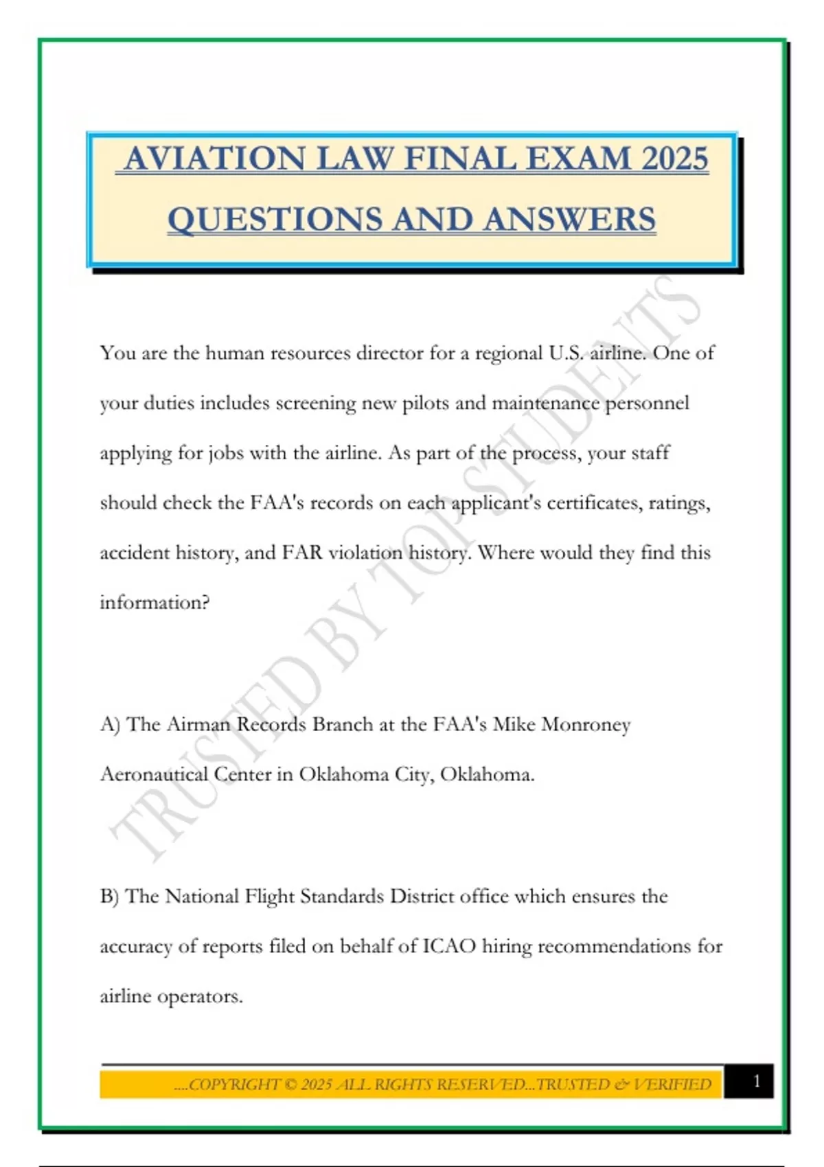 AVIATION LAW FINAL EXAM 2025
