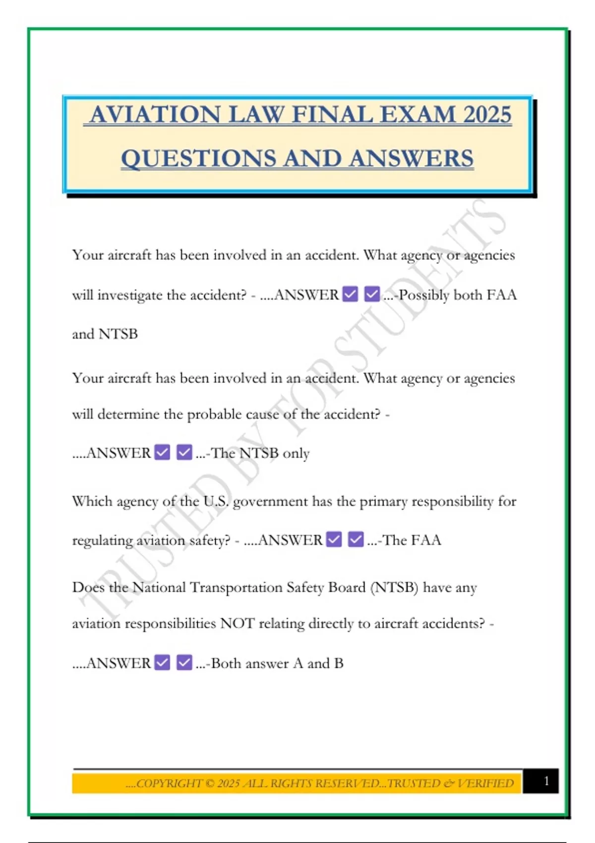 AVIATION LAW FINAL EXAM 2025