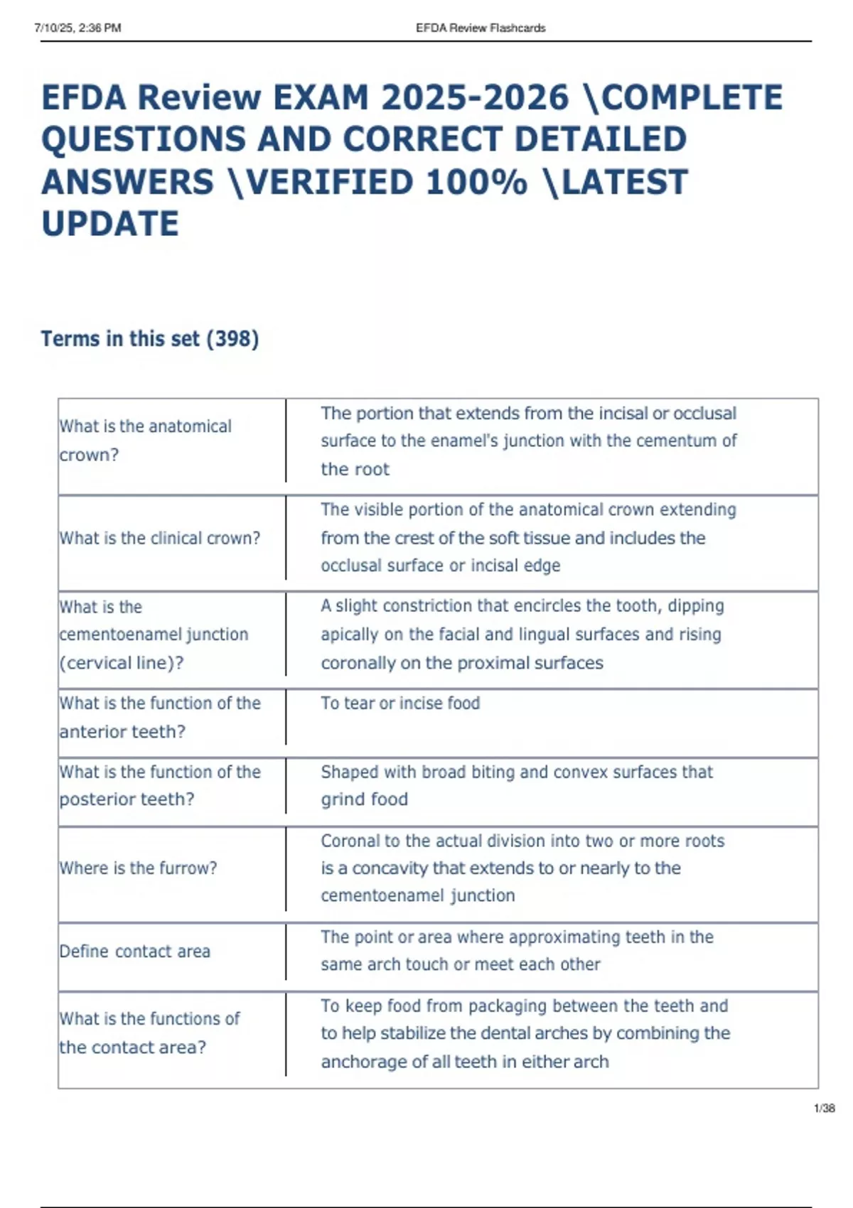 EFDA Review EXAM 2025-2026 \COMPLETE