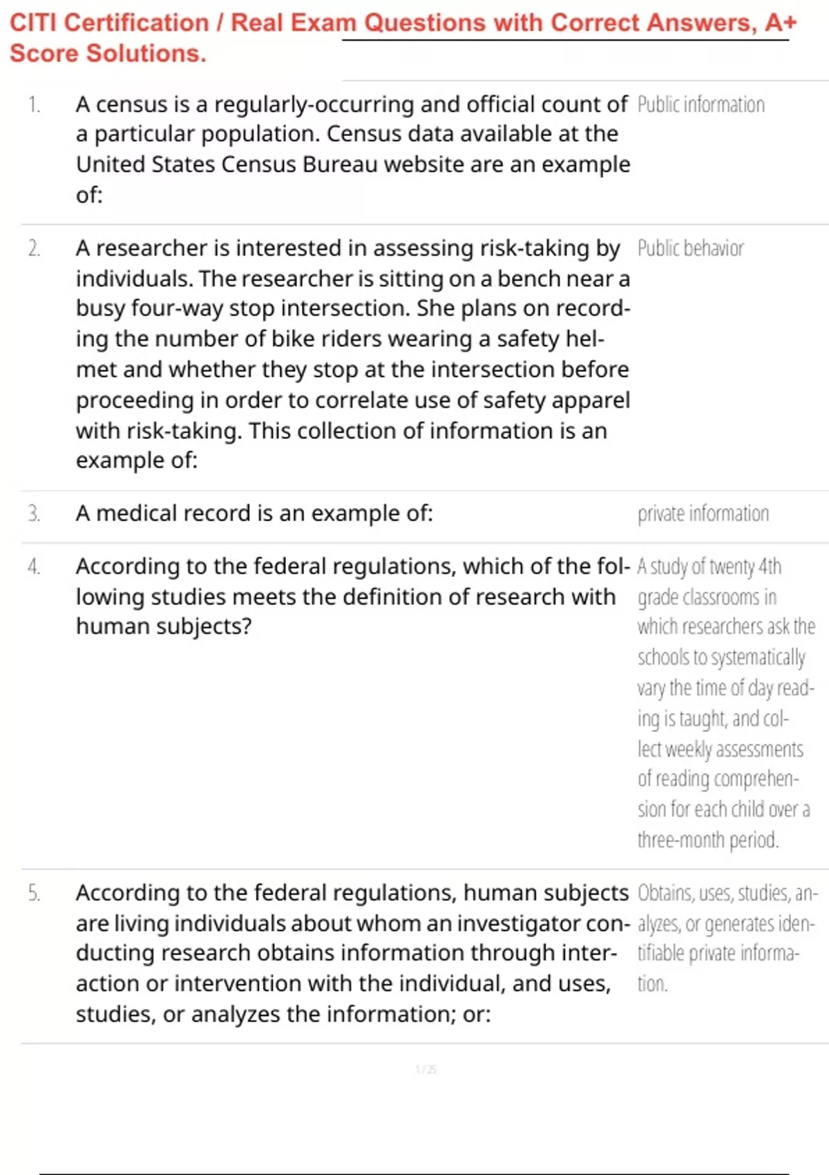 CITI Certification / Real Exam Questions with Correct Answers, A+