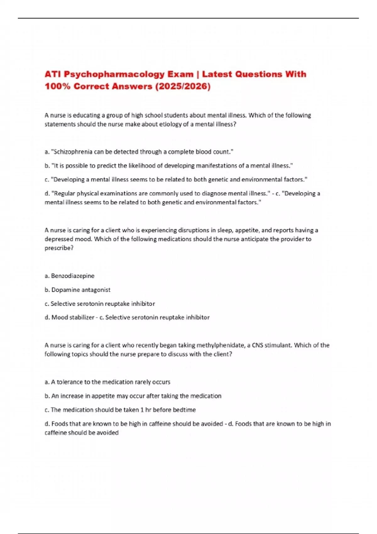 ATI Psychopharmacology Exam | Latest Questions With 100% Correct Answers (2025/2026)