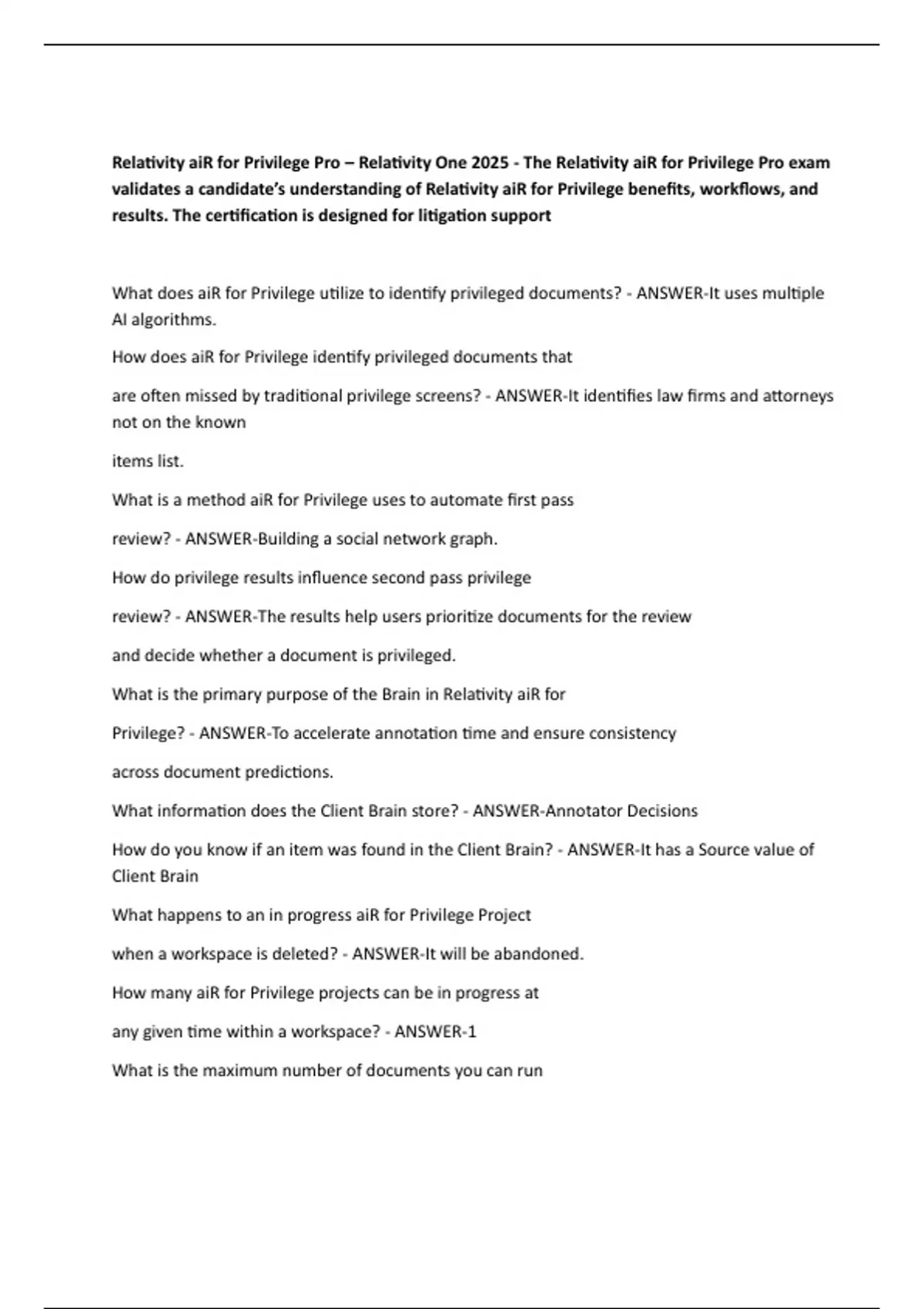 validates a candidate’s understanding of Relativity aiR for Privilege benefits, workflows, and