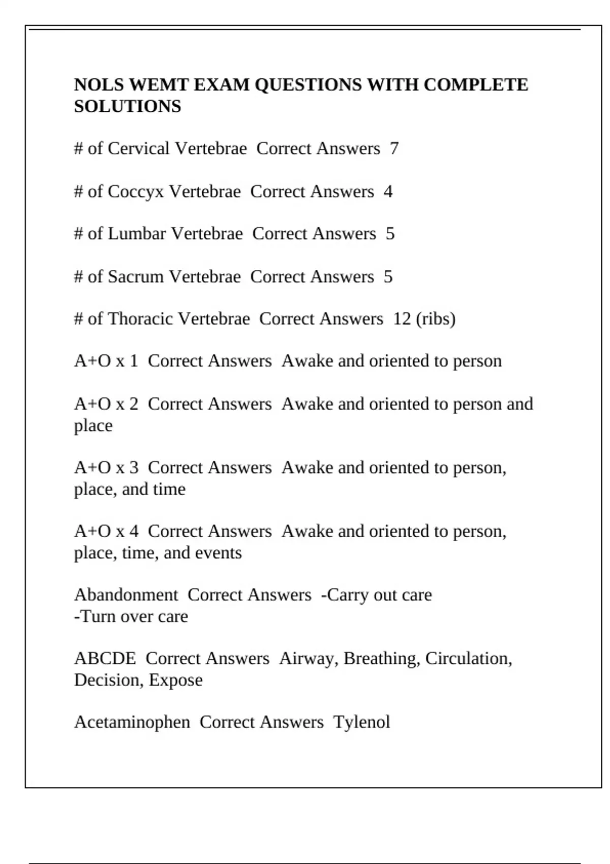 A+O x 1 Correct Answers Awake and oriented to person