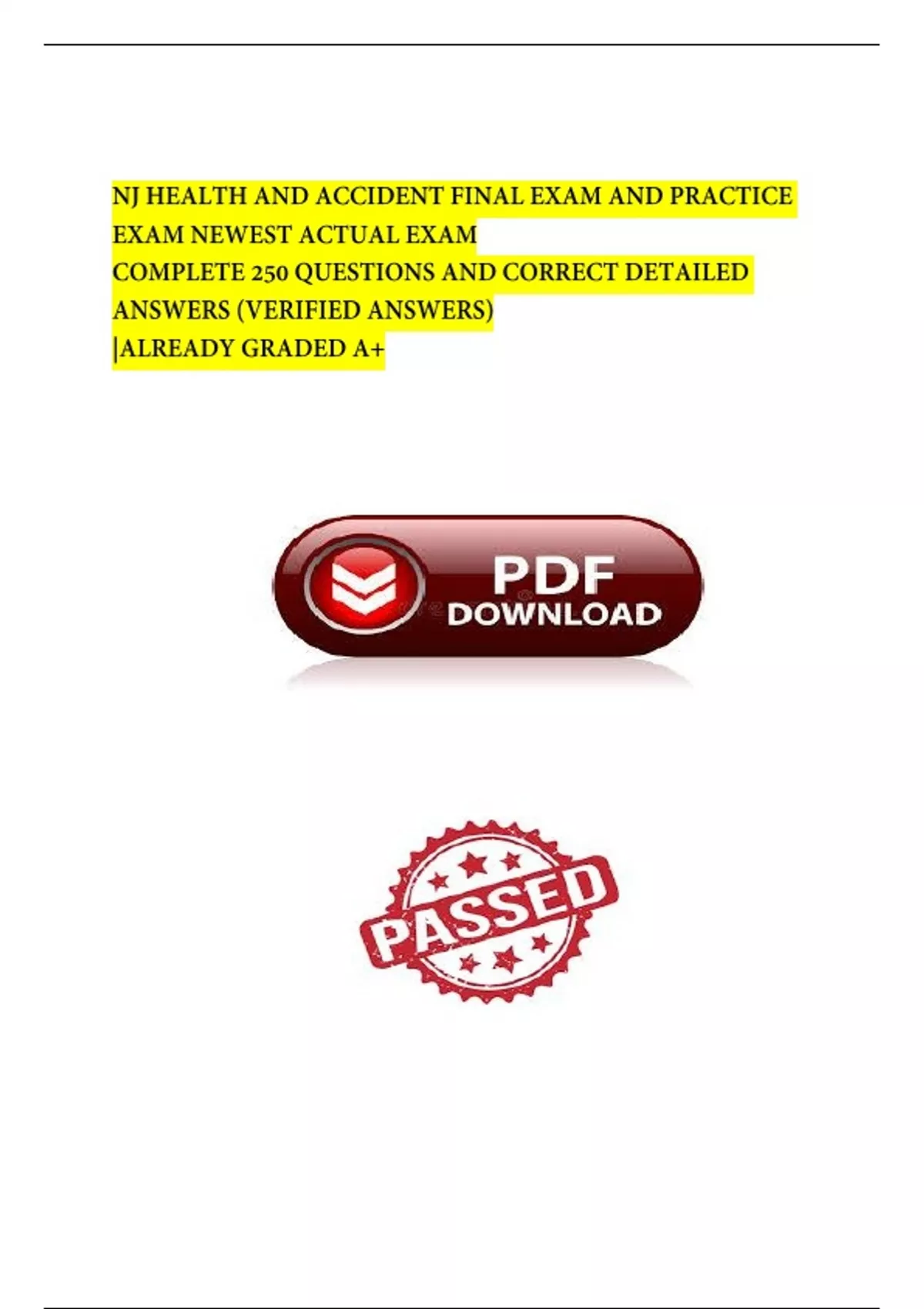 NJ HEALTH AND ACCIDENT FINAL EXAM AND PRACTICE EXAM NEWEST ACTUAL EXAM COMPLETE 250 QUESTIONS AND CORRECT DETAILED ANSWERS (VERIFIED ANSWERS) |ALREADY GRADED A+
