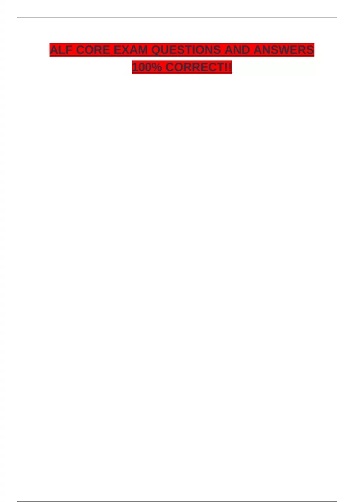ALF CORE EXAM QUESTIONS AND ANSWERS 100% CORRECT!!