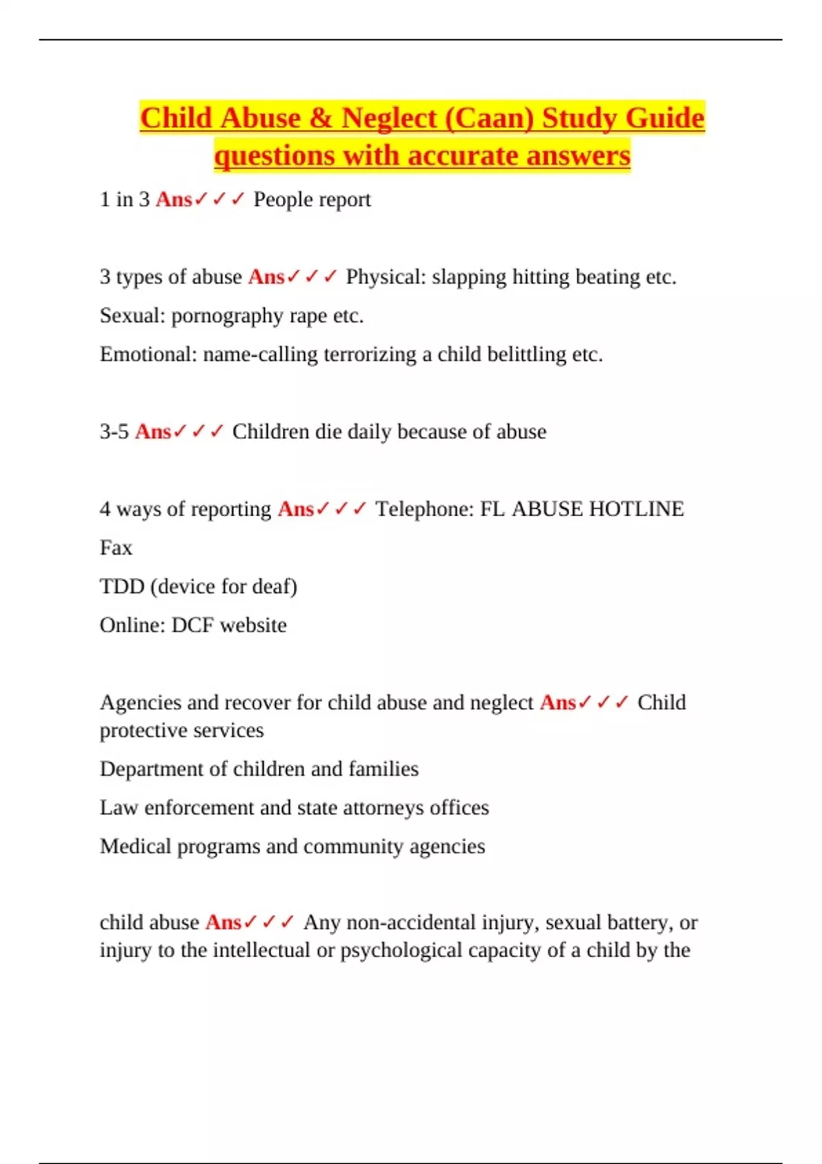 child abuse Ans✓✓✓ Any non-accidental injury, sexual battery, or