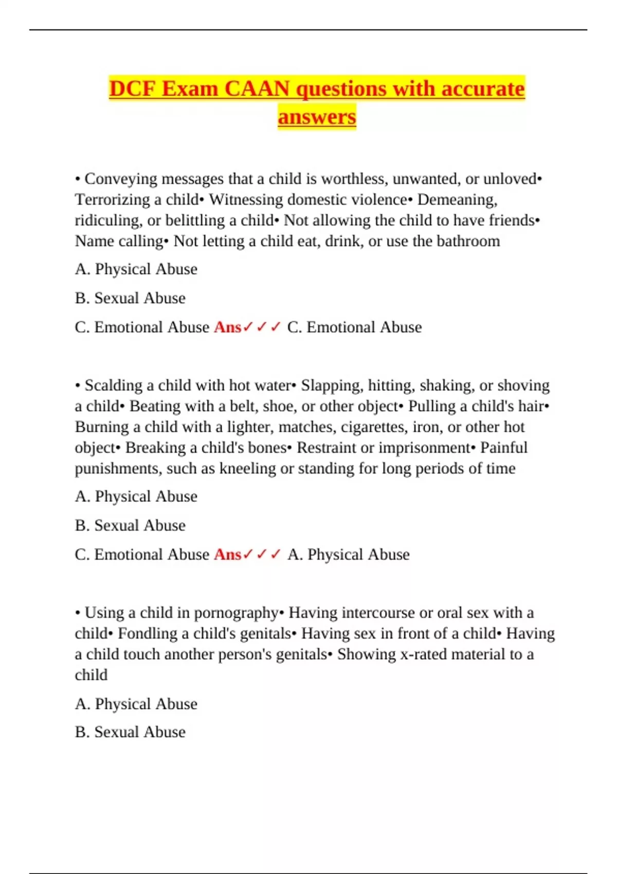 C. Emotional Abuse Ans✓✓✓ A. Physical Abuse