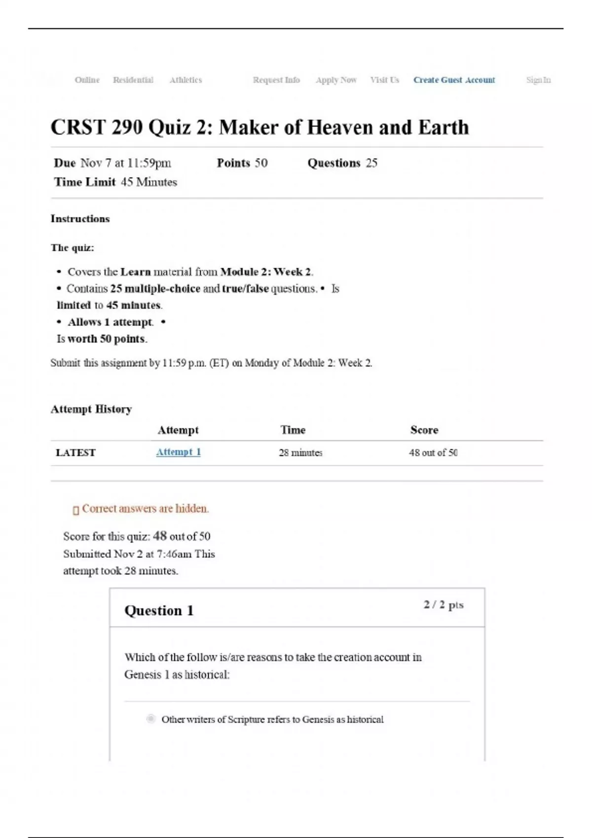 CRST 290 Quiz 2: Maker of Heaven and Earth | Questions and Answers | 2025 Update | 100% Correct.