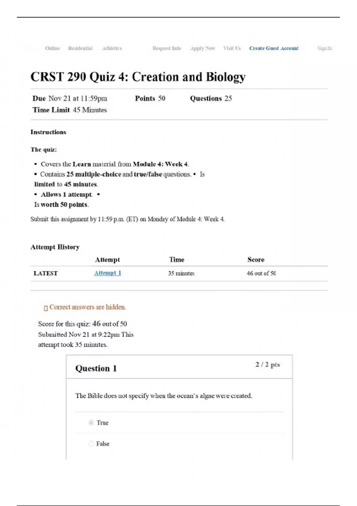 crst 290 quiz 4 creation and biology