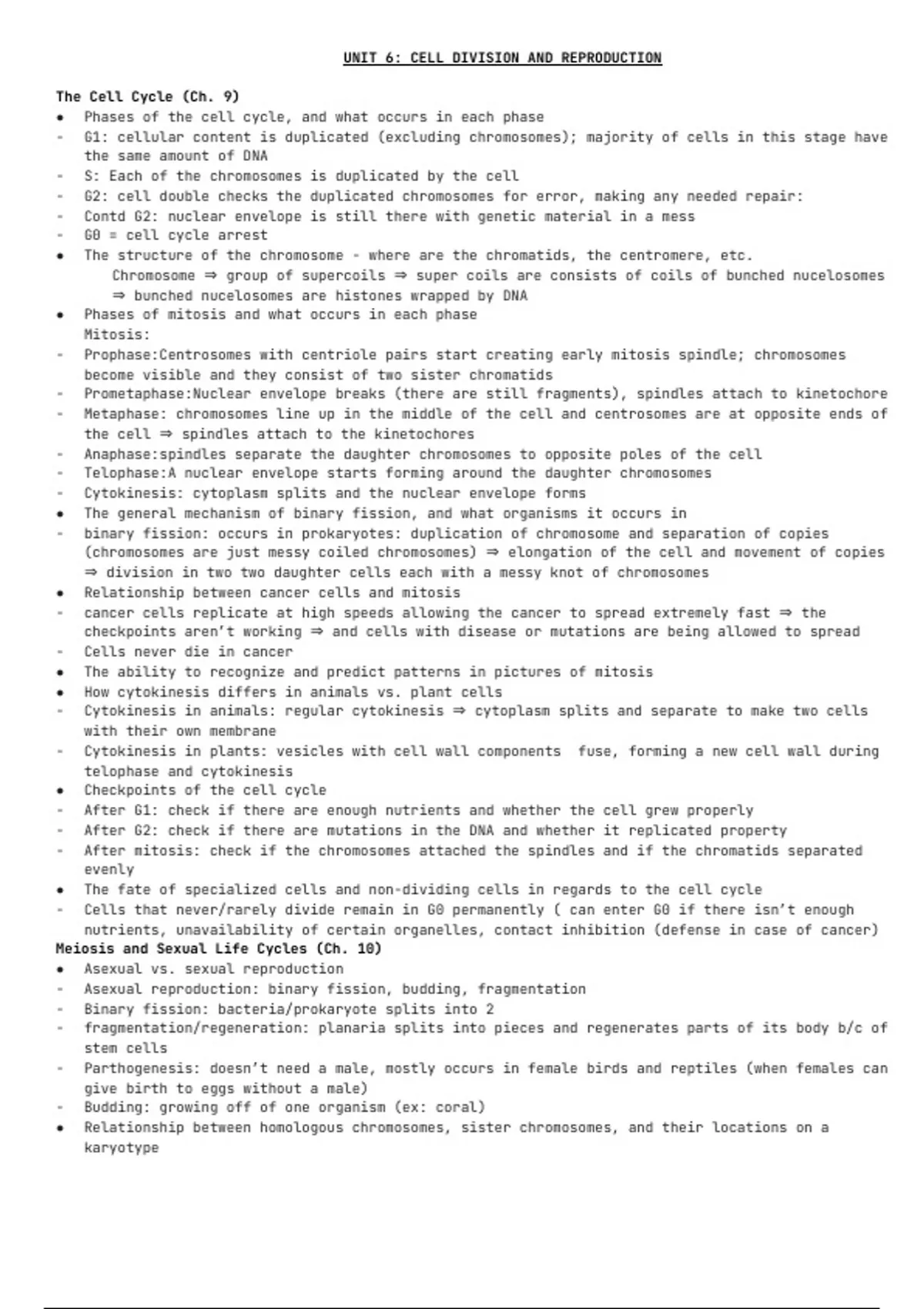 UNIT 6: CELL DIVISION AND REPRODUCTION