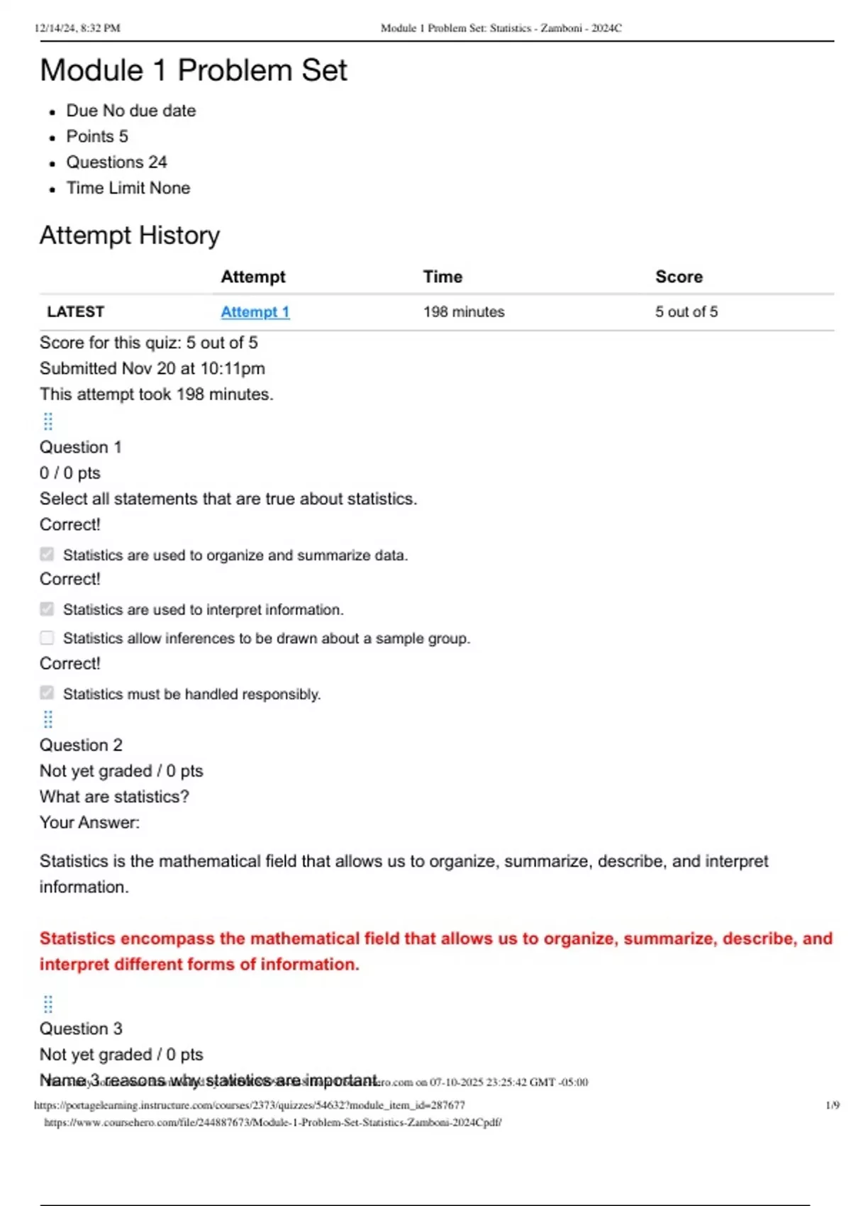 , 12/14/24, 8:32 PM Module 1 Problem Set: Statistics - Zamboni - 2024C
