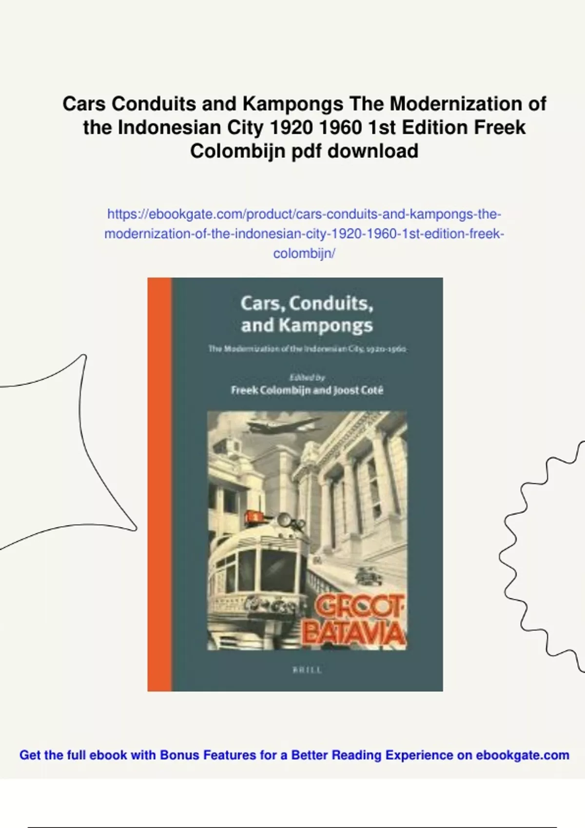 Summary Cars Conduits and Kampongs The Modernization of the Indonesian City st Edition Freek Colombijn - Digital Download