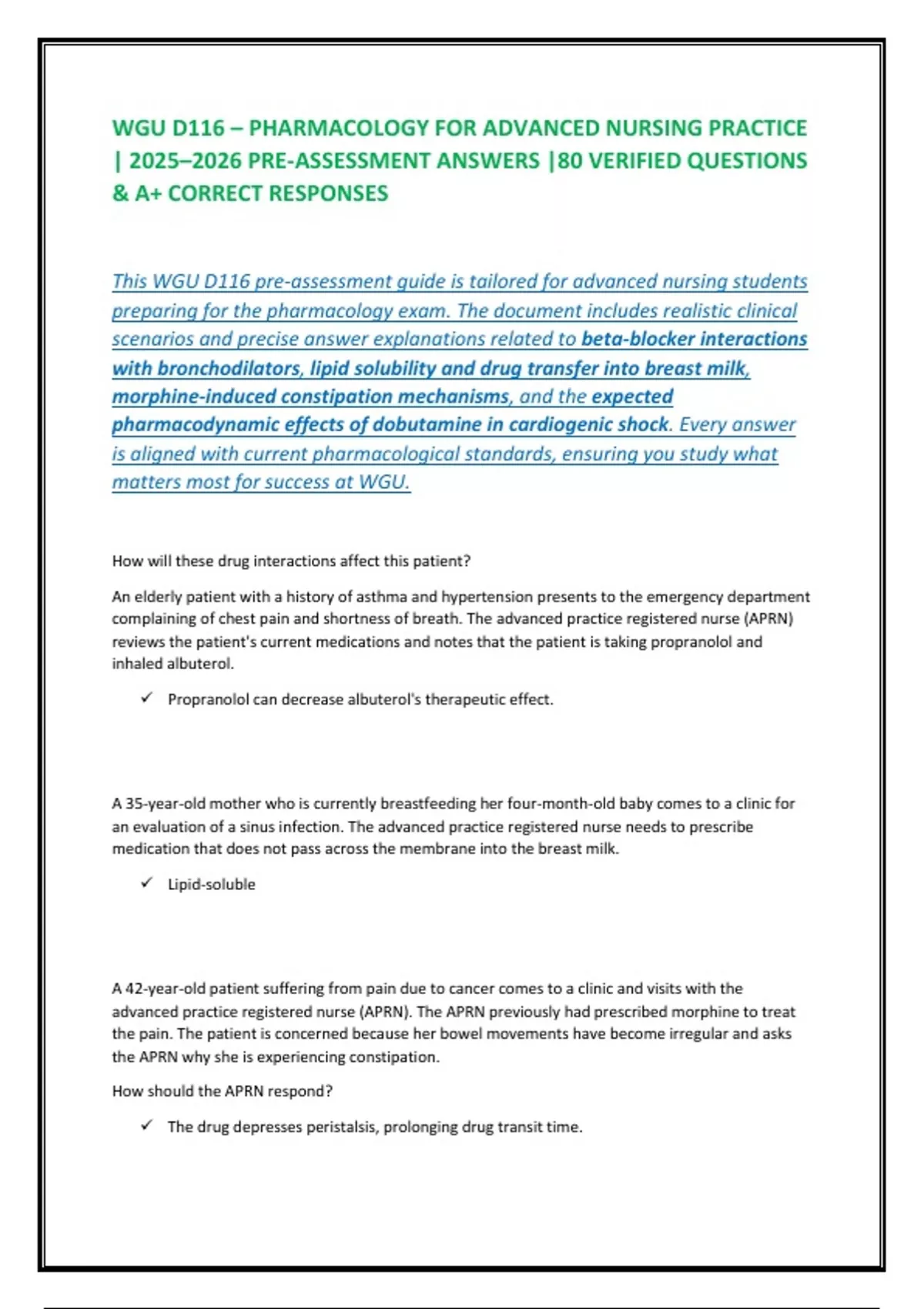 This WGU D116 pre-assessment guide is tailored for advanced nursing students