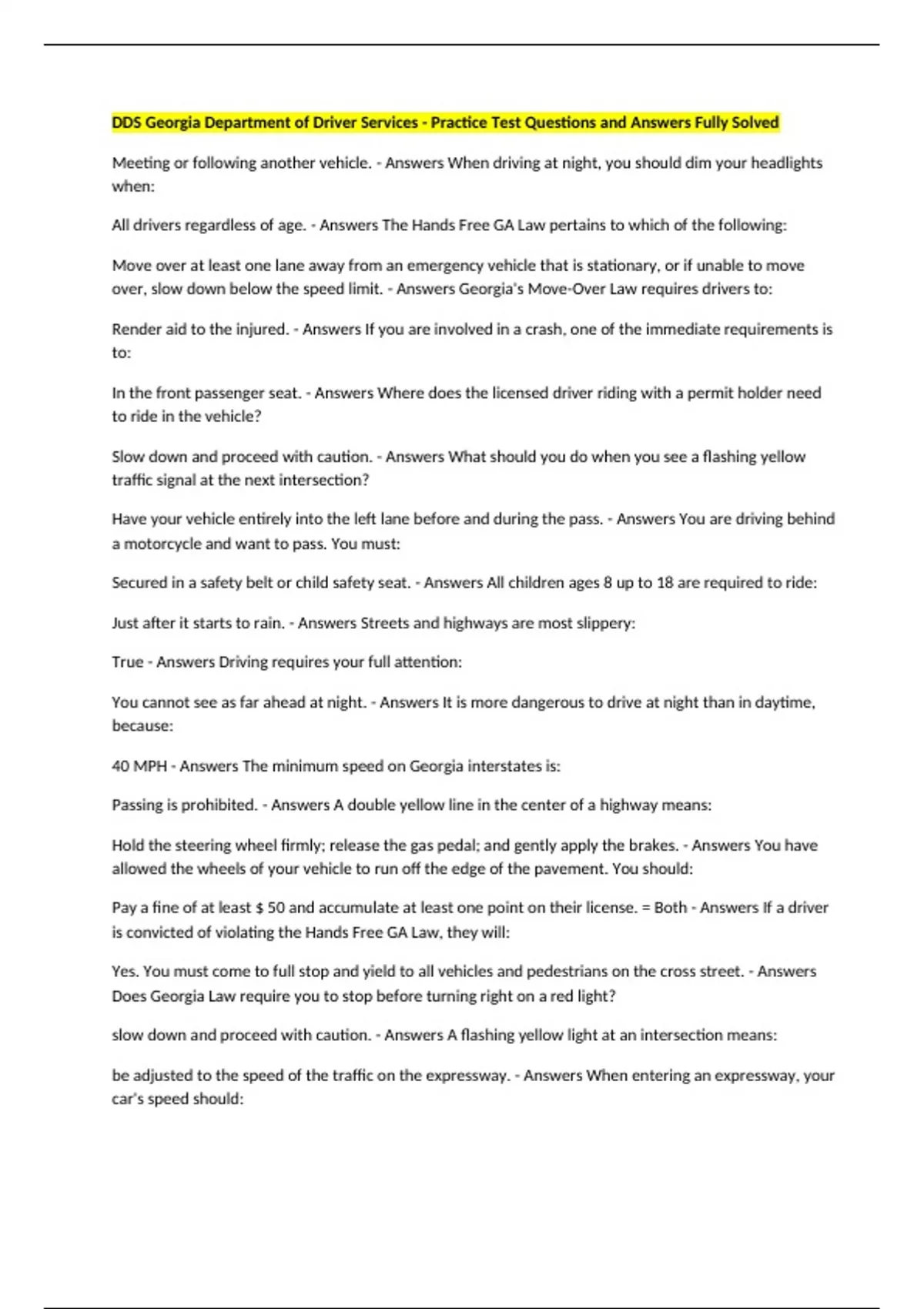 All drivers regardless of age. - Answers The Hands Free GA Law pertains to which of the following: