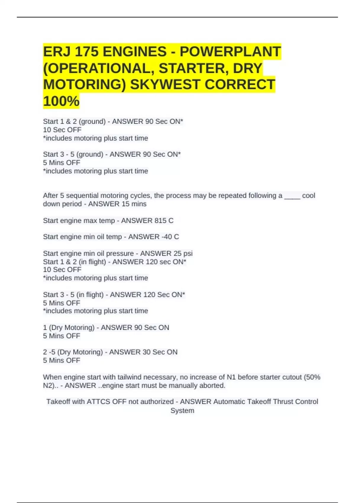 ERJ 175 ENGINES - POWERPLANT (OPERATIONAL, STARTER, DRY MOTORING) SKYWEST CORRECT 100%
