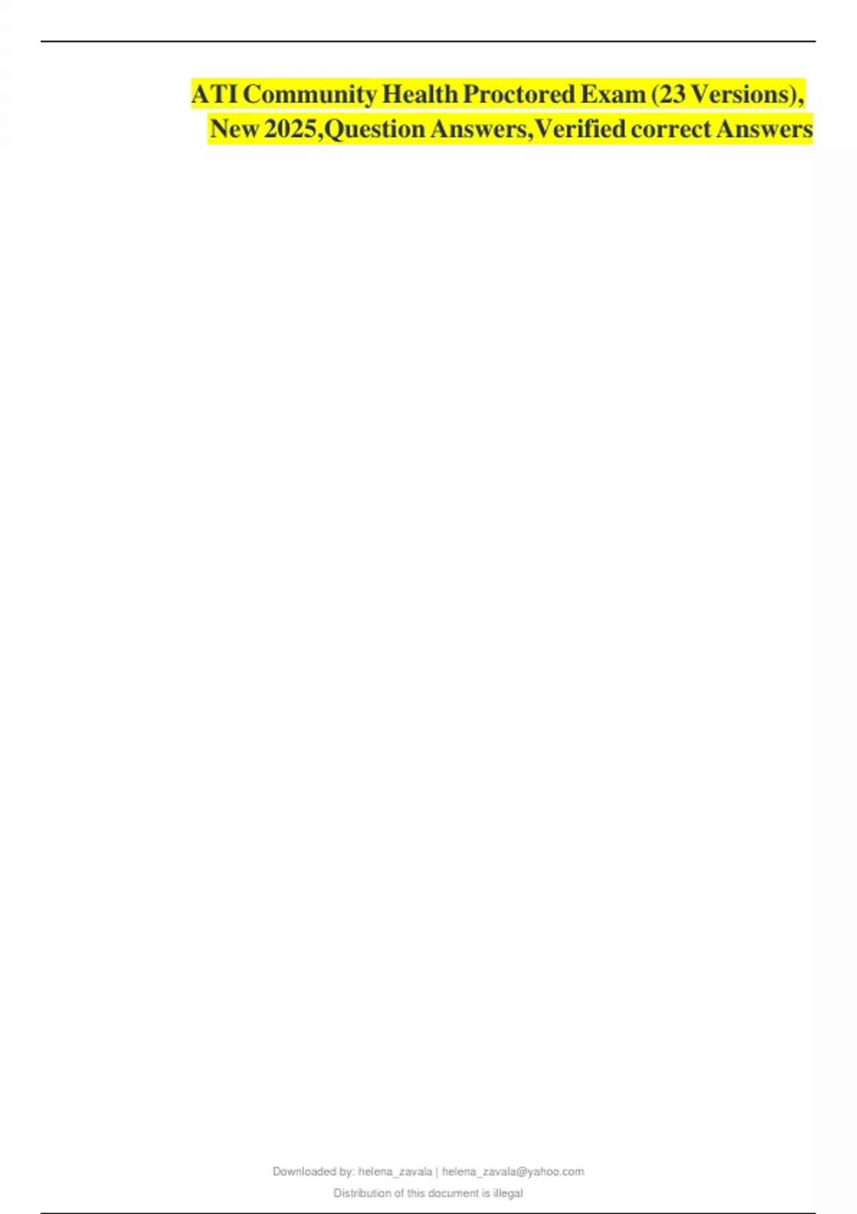 ATI Community Health Proctored Exam (23 Versions), New 2025,Question Answers,Verified correct