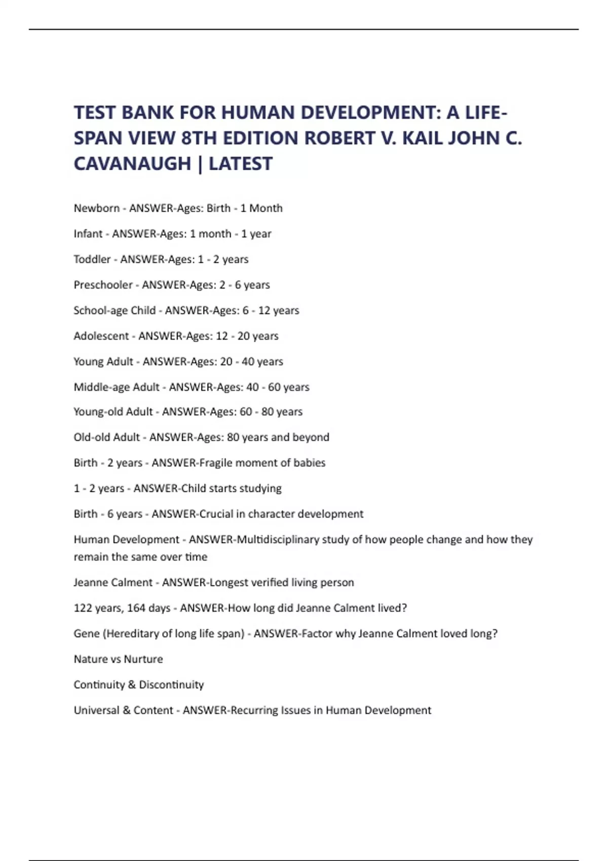 Human Development - ANSWER-Multidisciplinary study of how people change and how they
