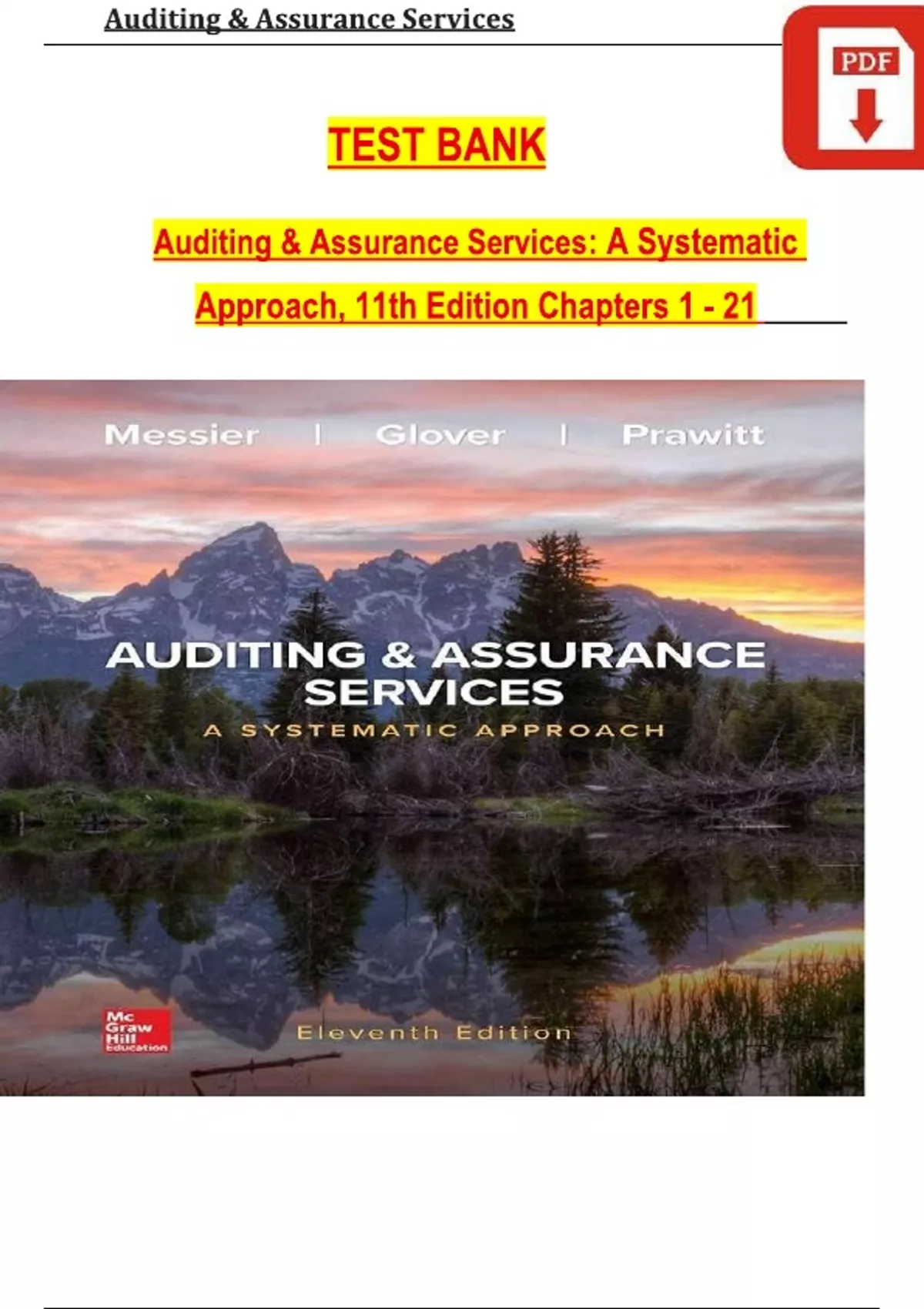 TEST BANK For Auditing & Assurance Services: A Systematic Approach, 11th Edition By William Messier Jr, Steven Glover, Verified Chapters 1 - 21, Complete Newest Version