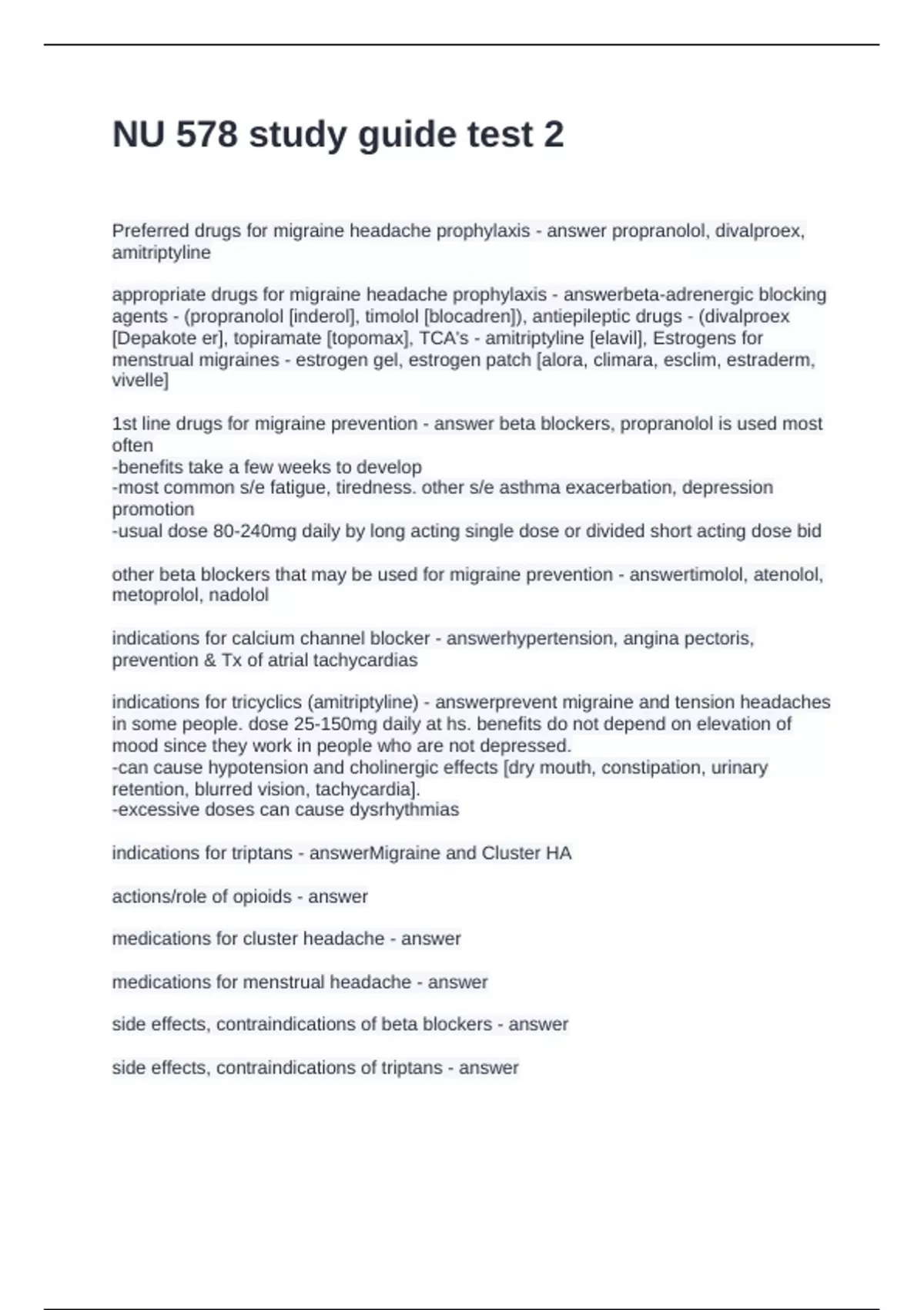NU 578 study guide test 2 Questions with Complete Solutions