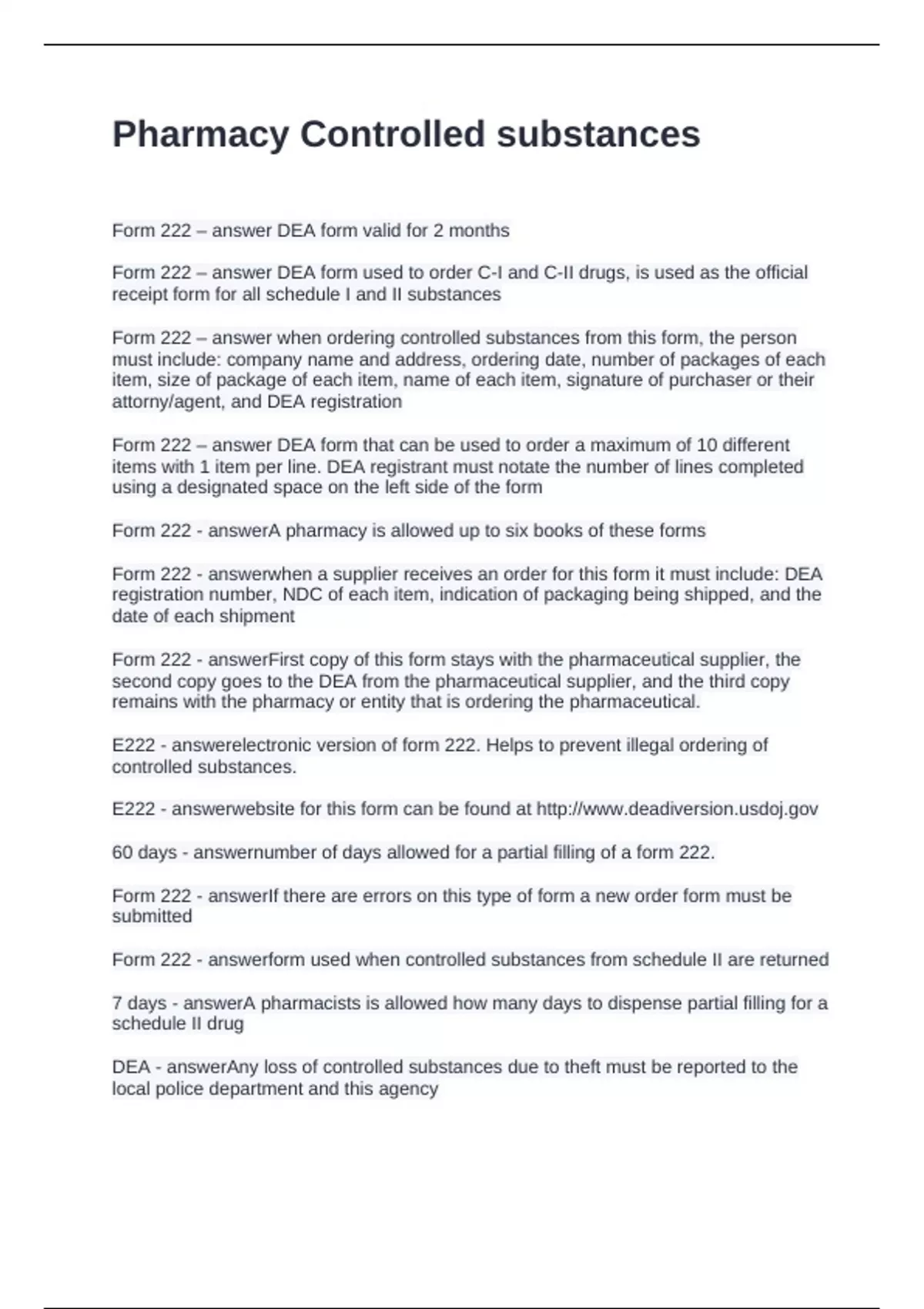 Pharmacy Controlled substances Questions and Answers 100% Correct