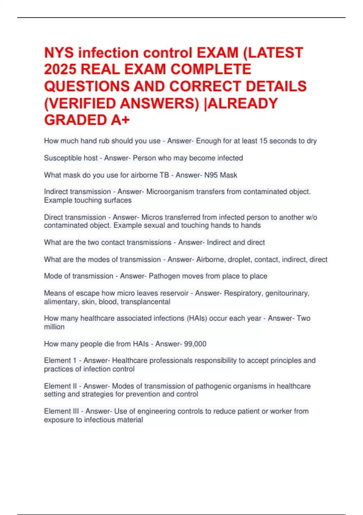 Element II - Answer- Modes of transmission of pathogenic organisms in healthcare