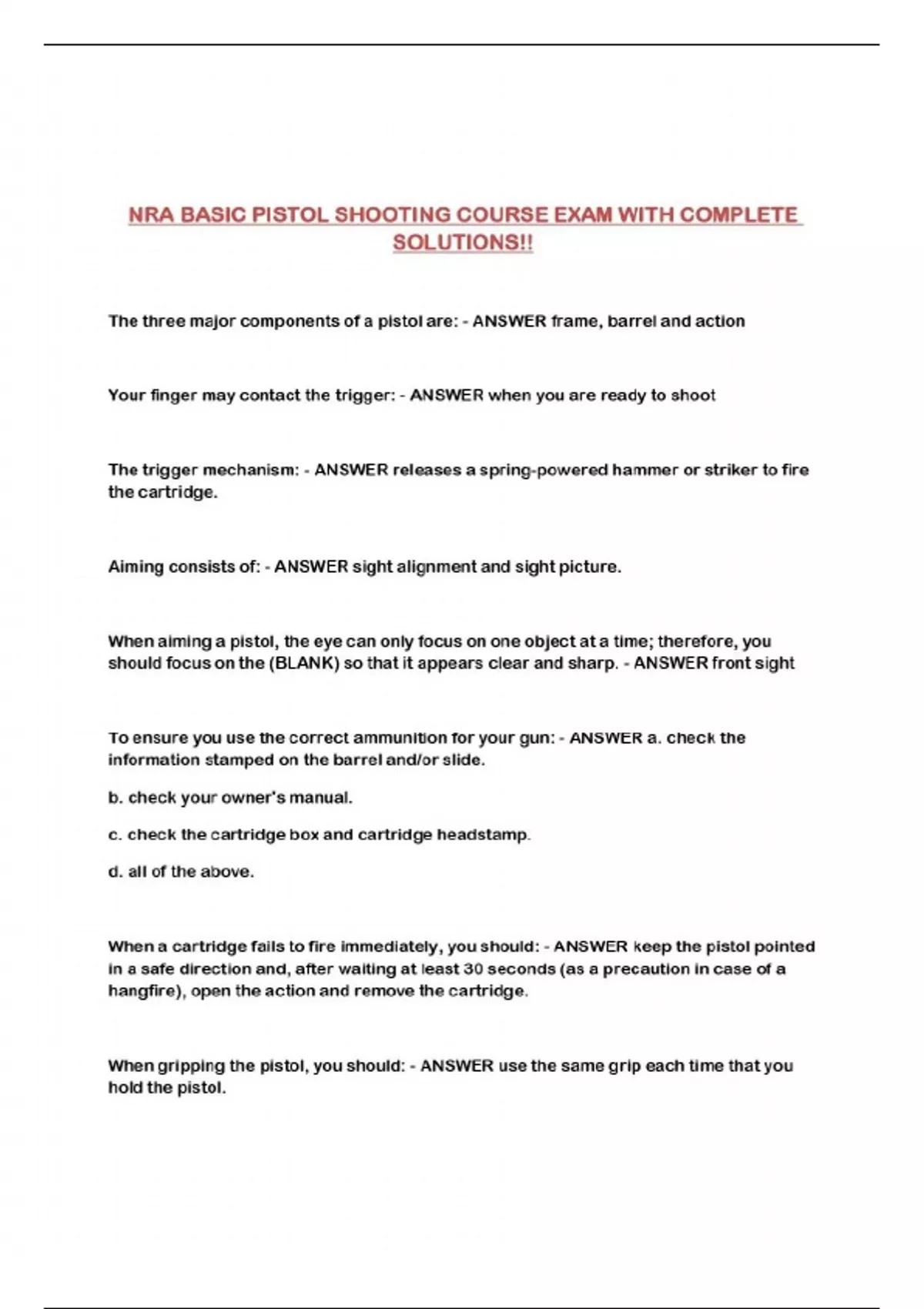 NRA BASIC PISTOL SHOOTING COURSE EXAM WITH COMPLETE SOLUTIONS!!...