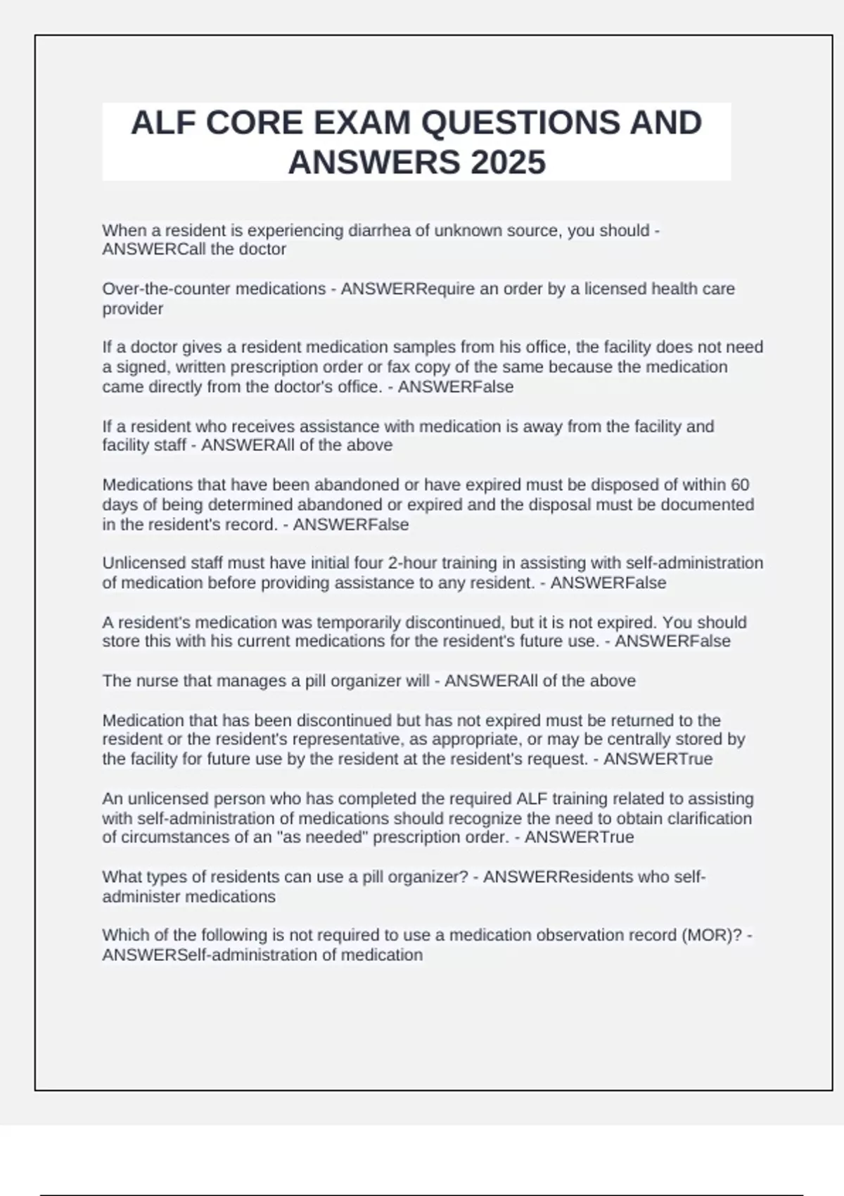ALF CORE EXAM QUESTIONS AND ANSWERS 2025