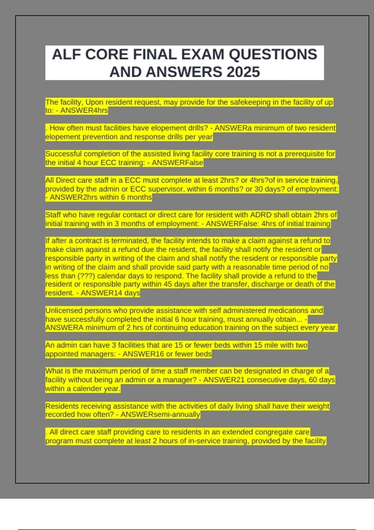 . How often must facilities have elopement drills? - ANSWERa minimum of two resident