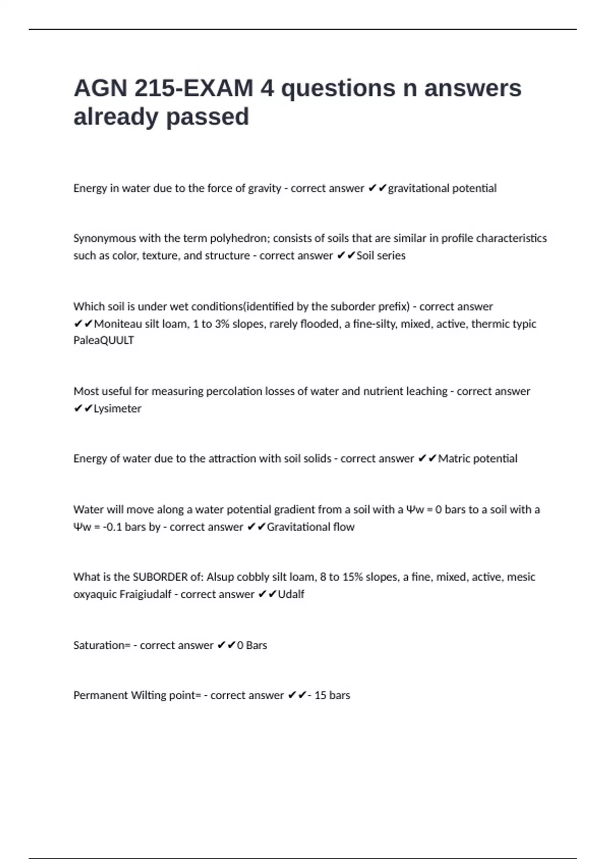 Comparative measure of the energy stored in soil water - correct answer ✔✔Soil water