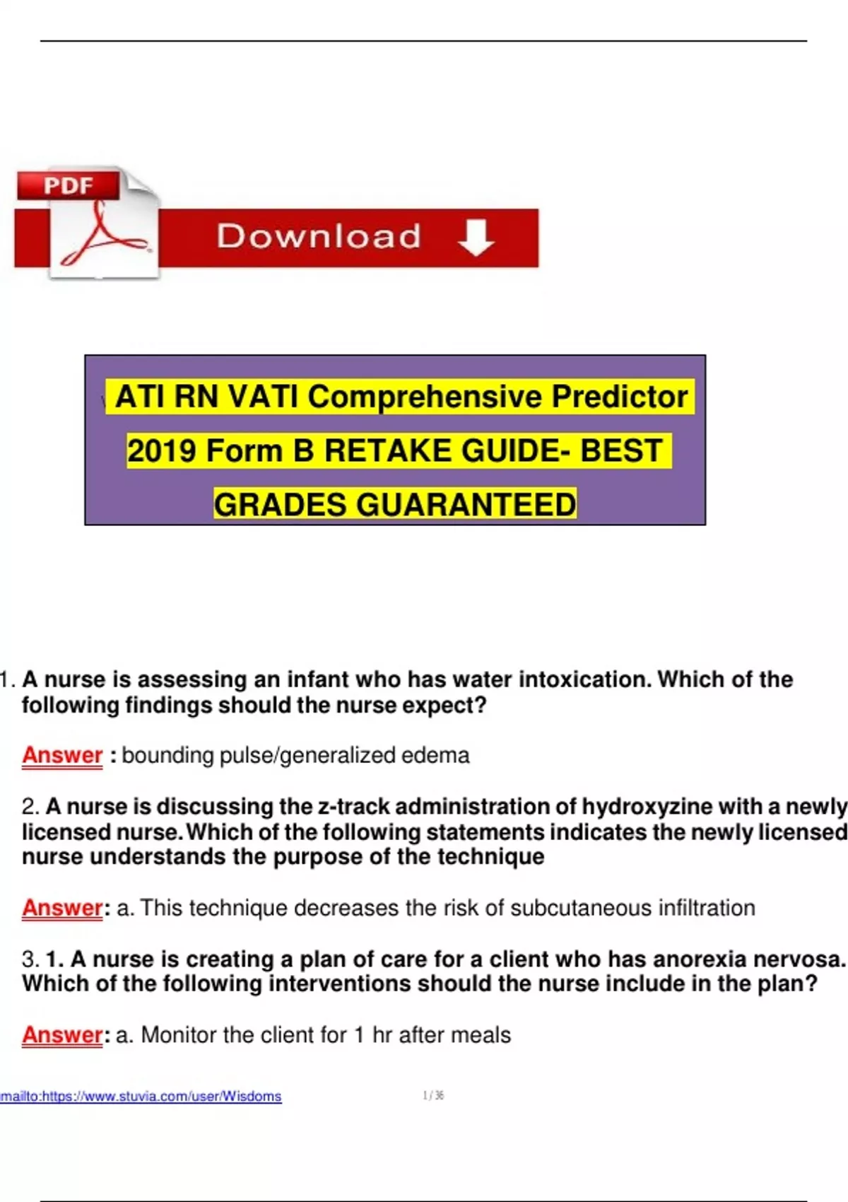 ATI RN VATI Comprehensive Predictor 2019 Form B RETAKE GUIDE- BEST GRADES GUARANTEED