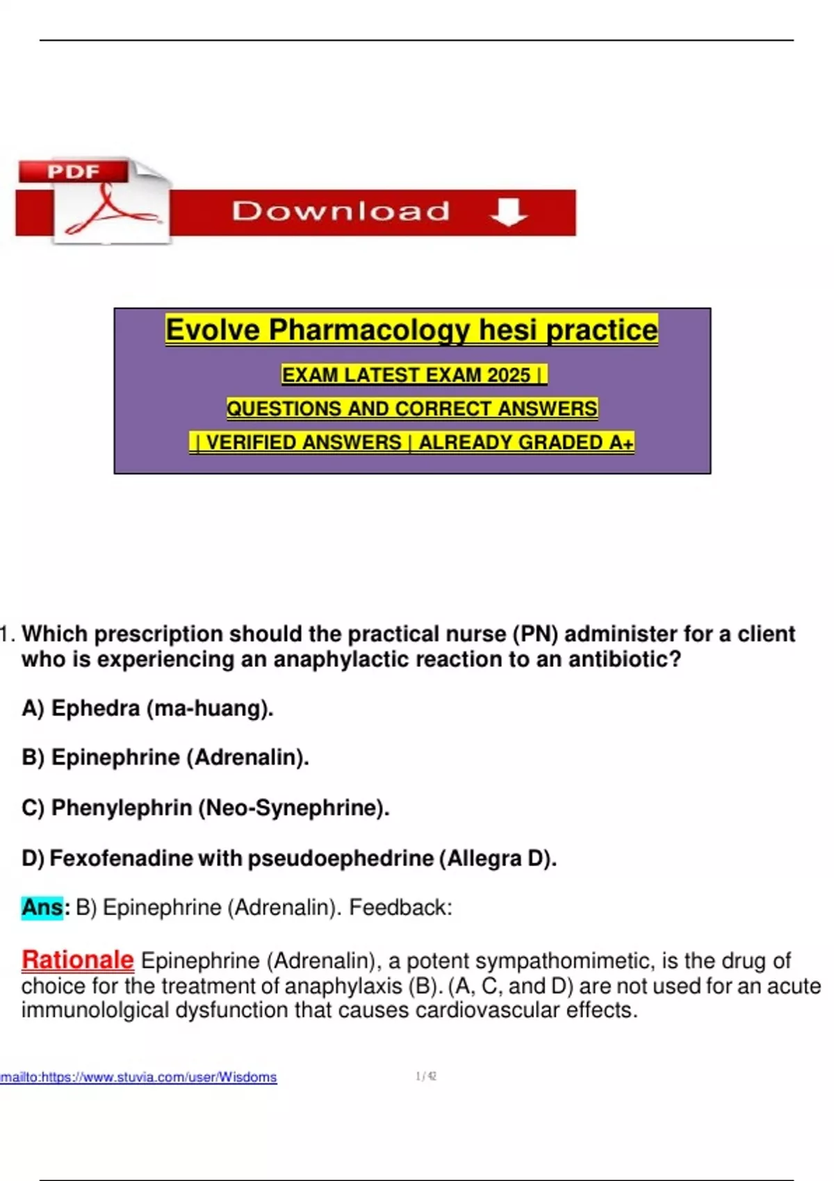 choice for the treatment of anaphylaxis (B). (A, C, and D) are not used for an acute