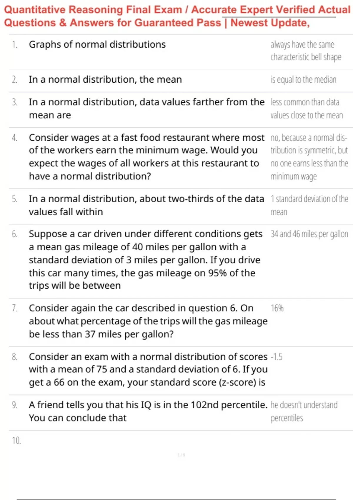 9. A friend tells you that his IQ is in the 102nd percentile. he doesn't understand