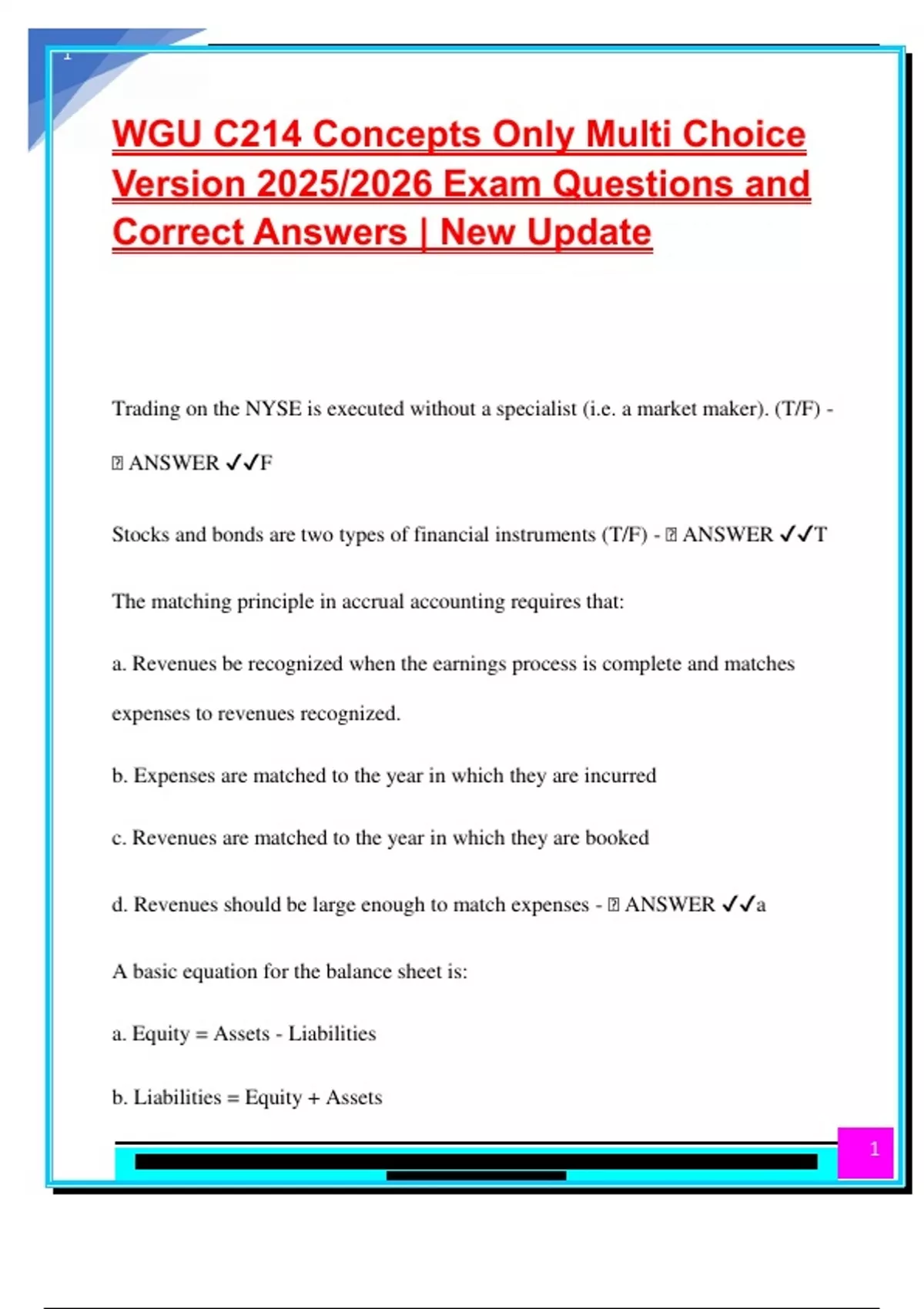 d. Assets = Equity - Liabilities - 🧠 ANSWER ✔✔a