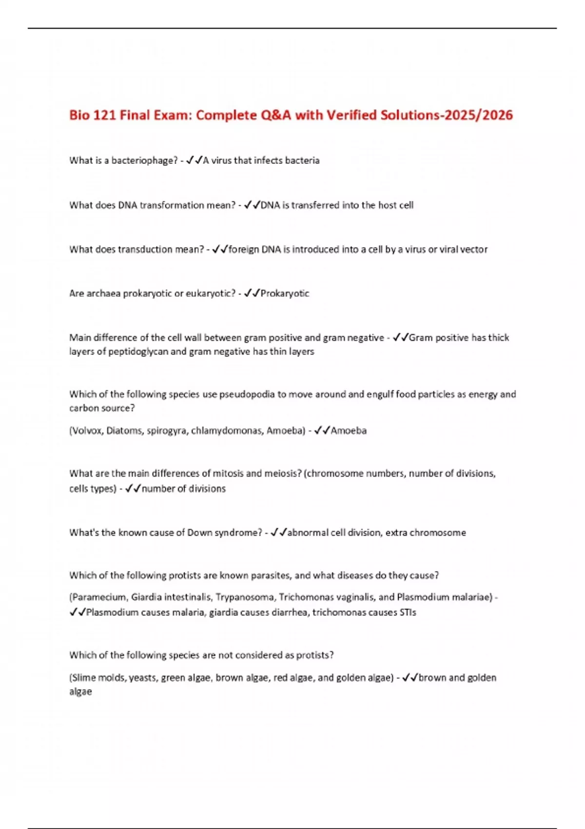 Bio 121 Final Exam: Complete Q&A with Verified Solutions-2025/2026