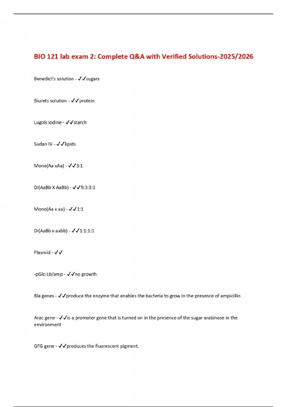 BIO 121 lab exam 2: Complete Q&A with Verified Solutions-2025/2026