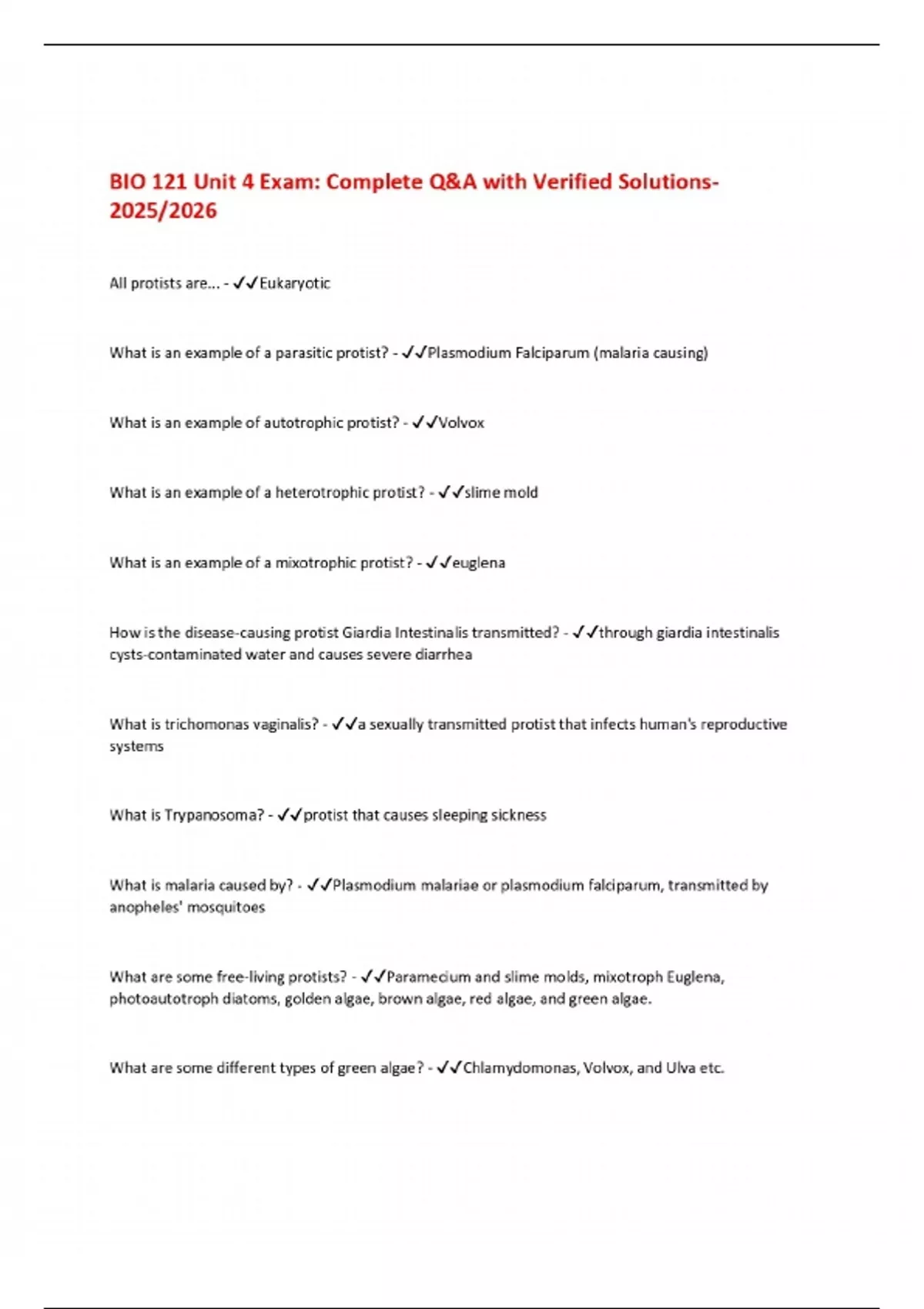 BIO 121 Unit 4 Exam: Complete Q&A with Verified Solutions 2025/2026