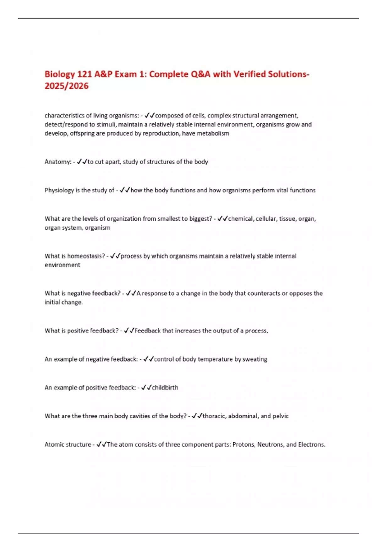 Biology 121 A&P Exam 1: Complete Q&A with Verified Solutions 2025/2026