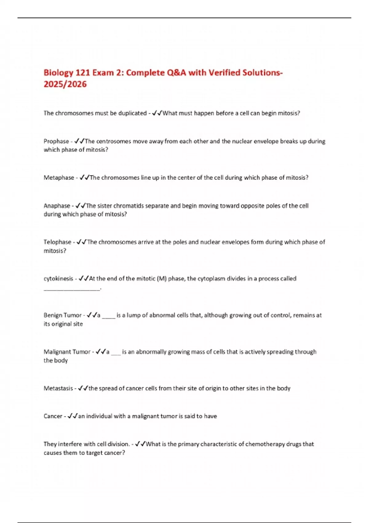 Biology 121 Exam 2: Complete Q&A with Verified Solutions 2025/2026