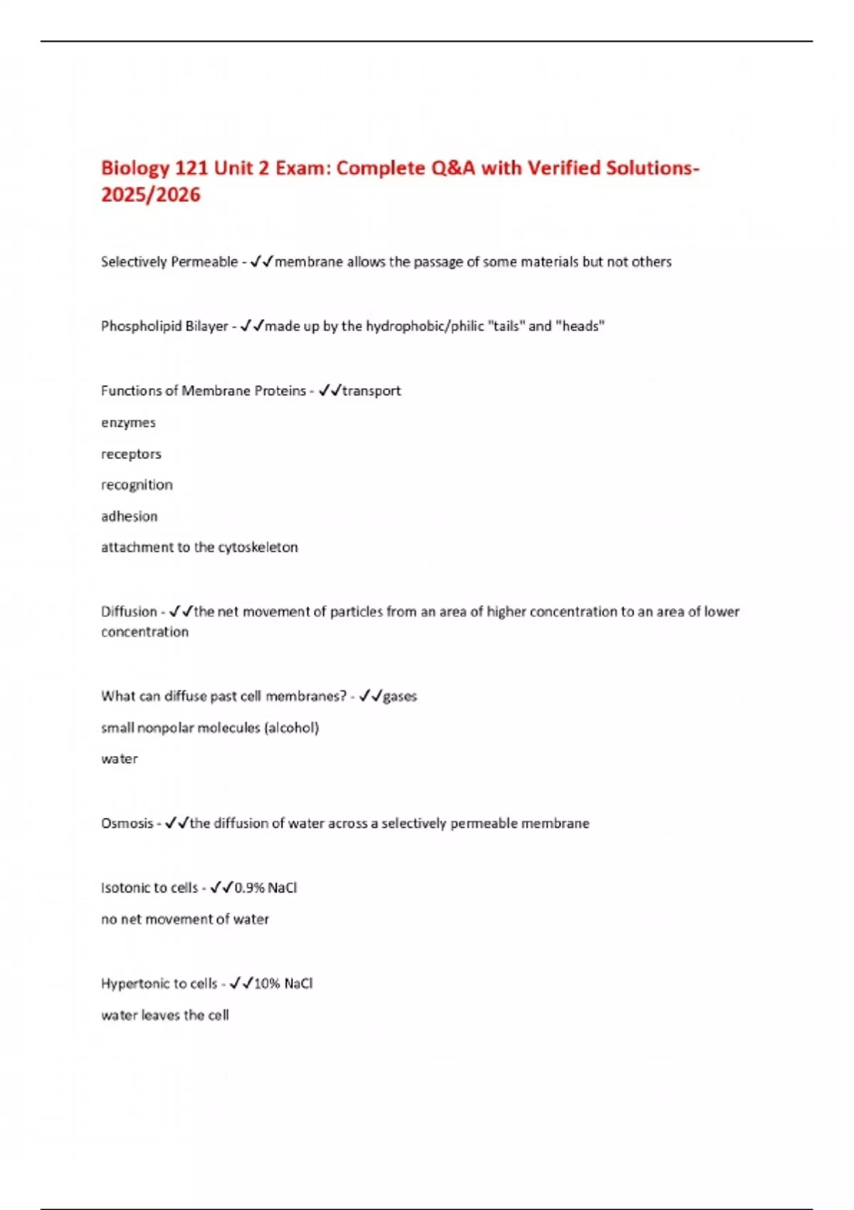 Biology 121 Unit 2 Exam: Complete Q&A with Verified Solutions 2025/2026