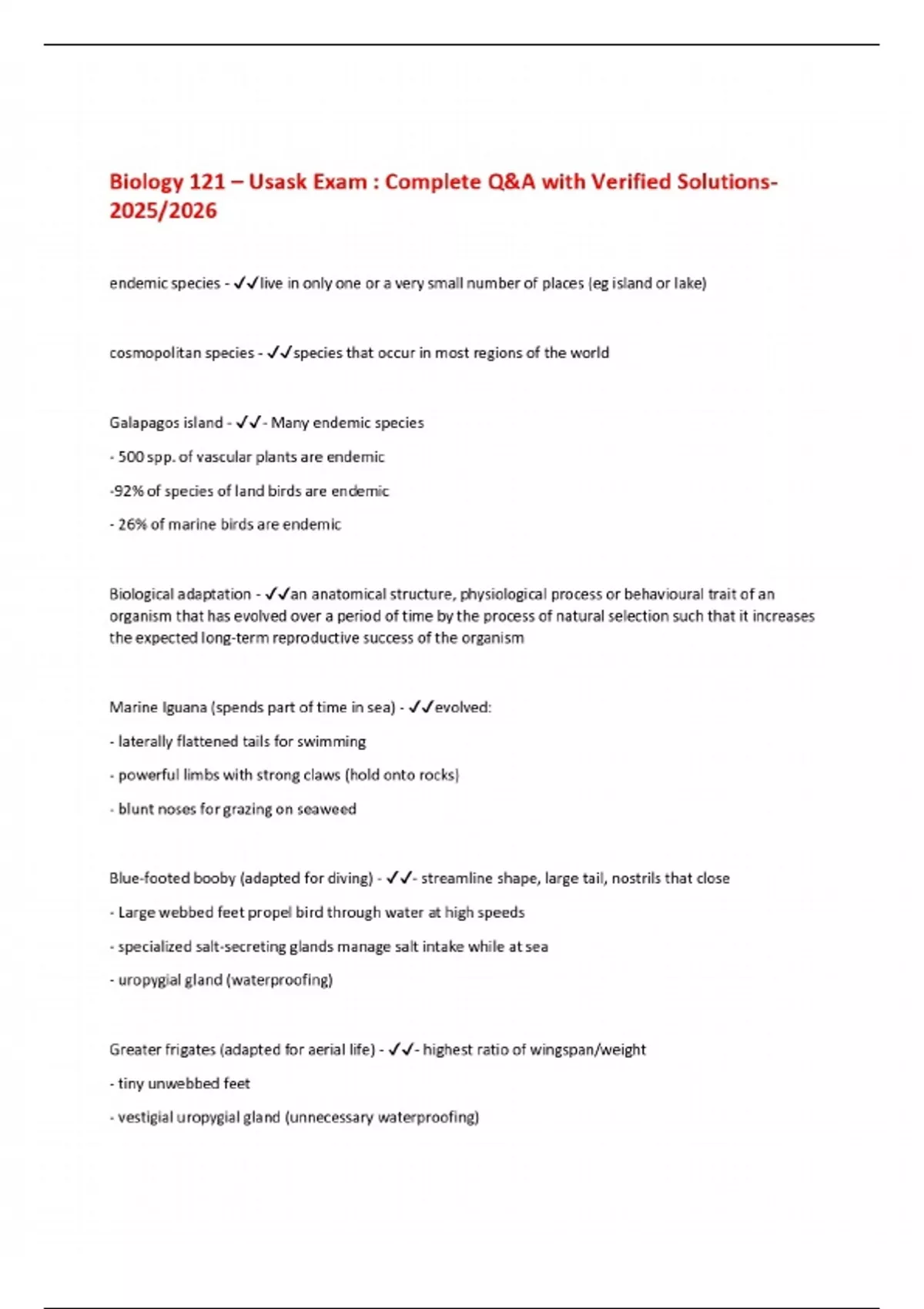 Biology 121 – Usask Exam : Complete Q&A with Verified Solutions 2025/2026
